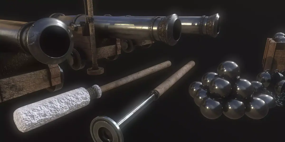 Pack DescriptionElevate your pirate scene with this high-quality, game-ready naval artillery pack. This meticulously modeled set includes everything you need to recreate a powerful broadside from the age of sail.