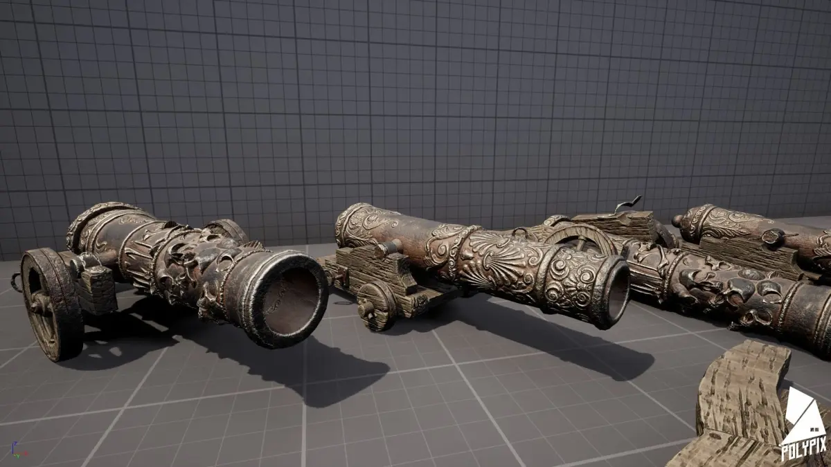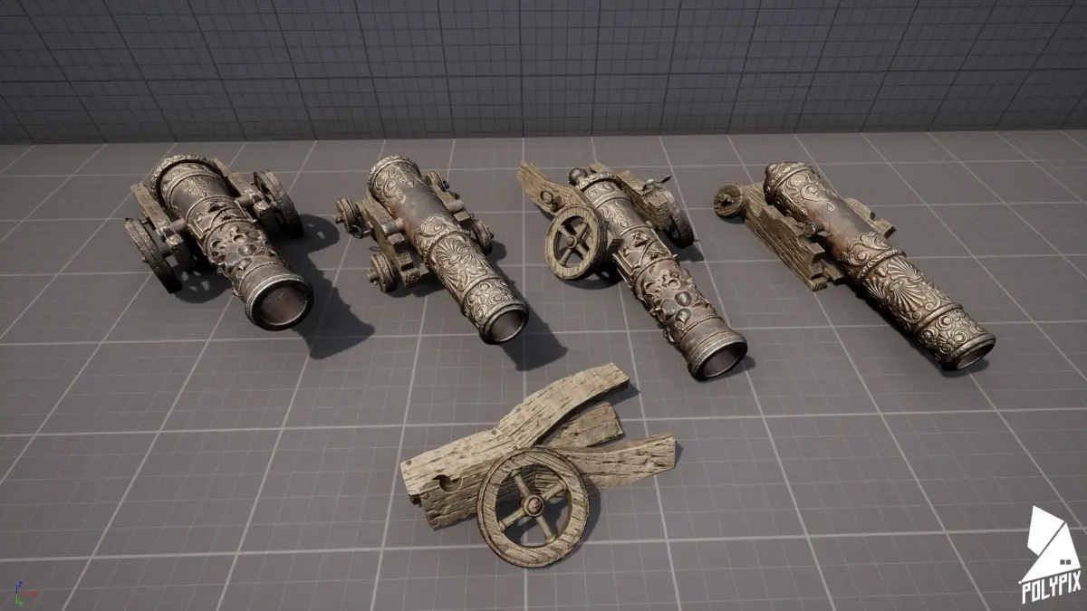 1x Pirate Cannon Fully Functional1x Pirate Cannon Broken Instance1x Queen's Guard Cannon Fully Functional1x Queen's Guard Cannon Broken Instance