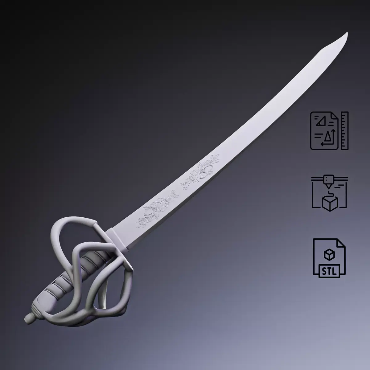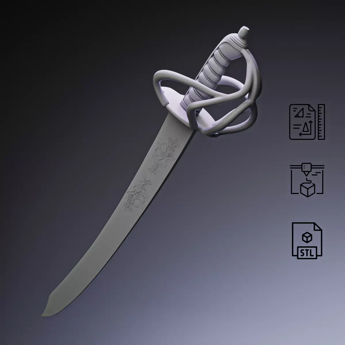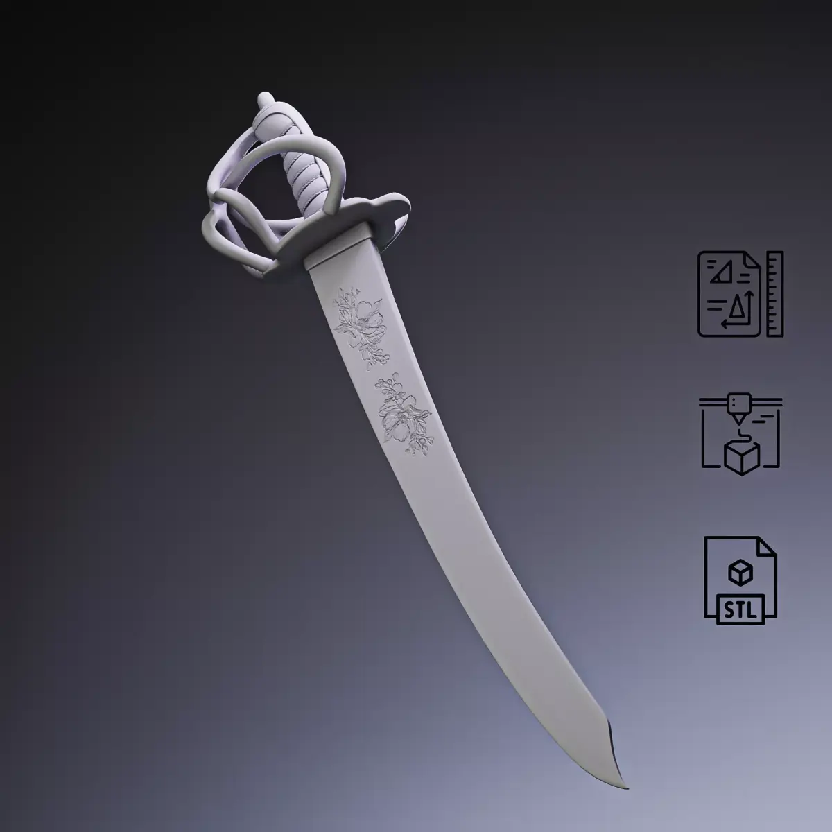 Pirate Cutlass Sword – 3D Printable Model (STL / OBJ)