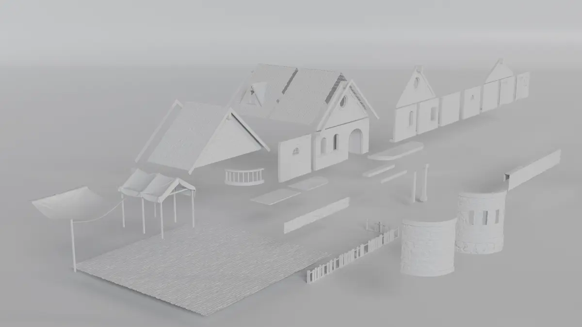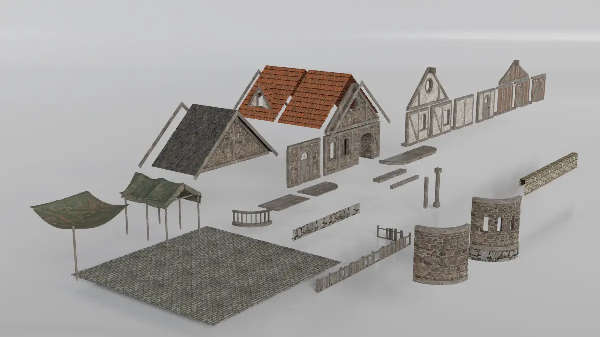 A suitable kit for speed building a pirate or medieval city. It is high poly, but could easily be decimated if a lower poly count is desired. 2k textures.