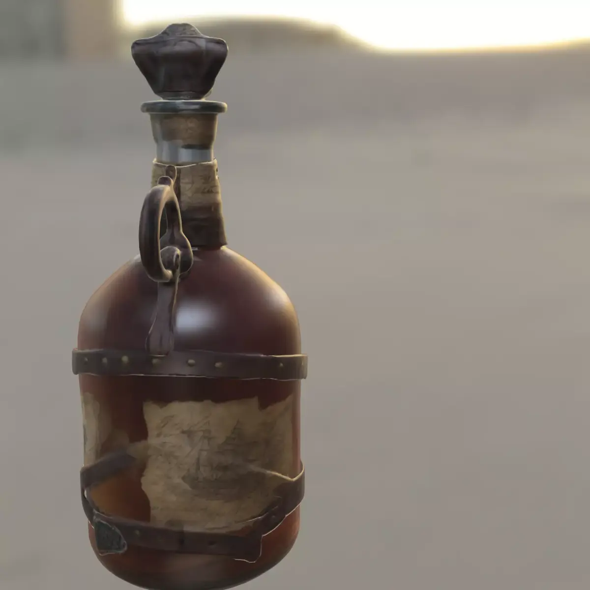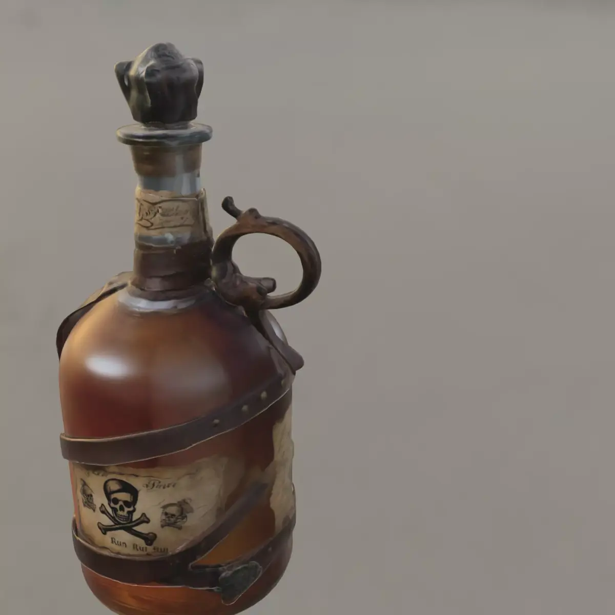 This 3D model represents a vintage pirate rum bottle wrapped in worn leather straps, featuring an old parchment label with skull and crossbones artwork. Designed for use as a prop or collectible item in fantasy, adventure, and pirate-themed games. Suitable for games like Sea of Thieves, Assassin’s Creed IV: Black Flag, Skull and Bones, The Witcher 3, and Darkest Dungeon. This asset can be used in-game or as a printable model for tabletop RPGs, dioramas, or decorative collectibles.