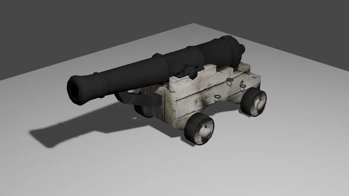 pirate ship cannon low poly 3d model made with blender for games.compatible with unity3d and unreal engine.you can also use this model for videos and mobile games.