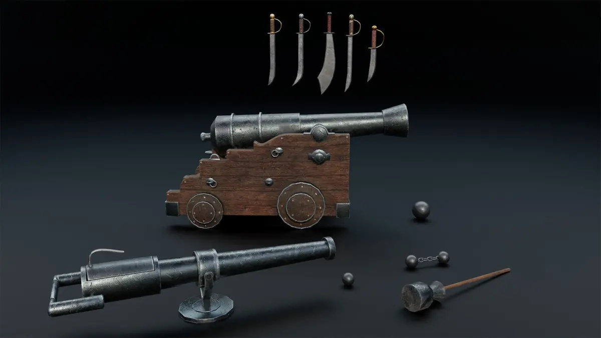 Pirate Ship with Interior - Props - Guns - Vol 2 Low-poly 3D model