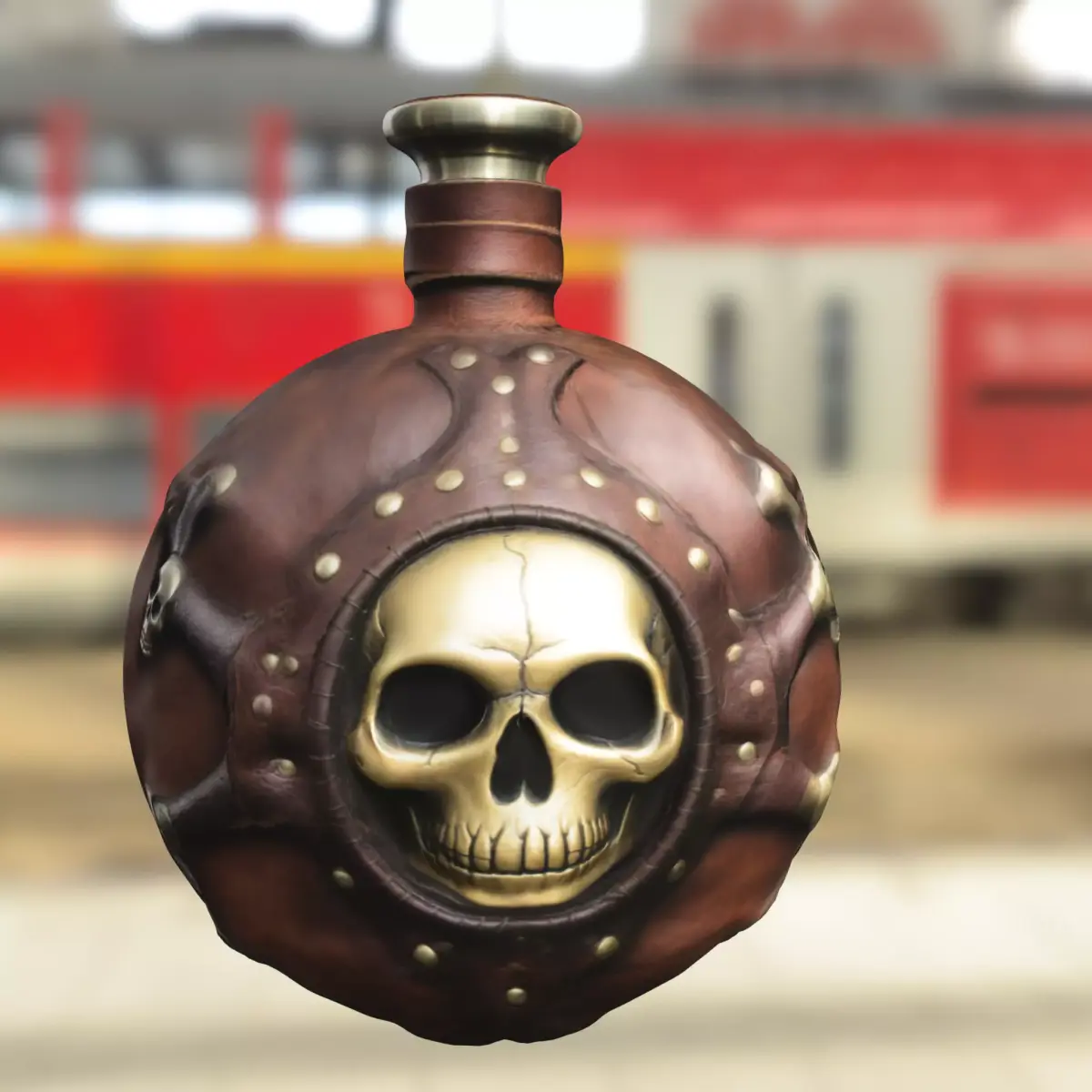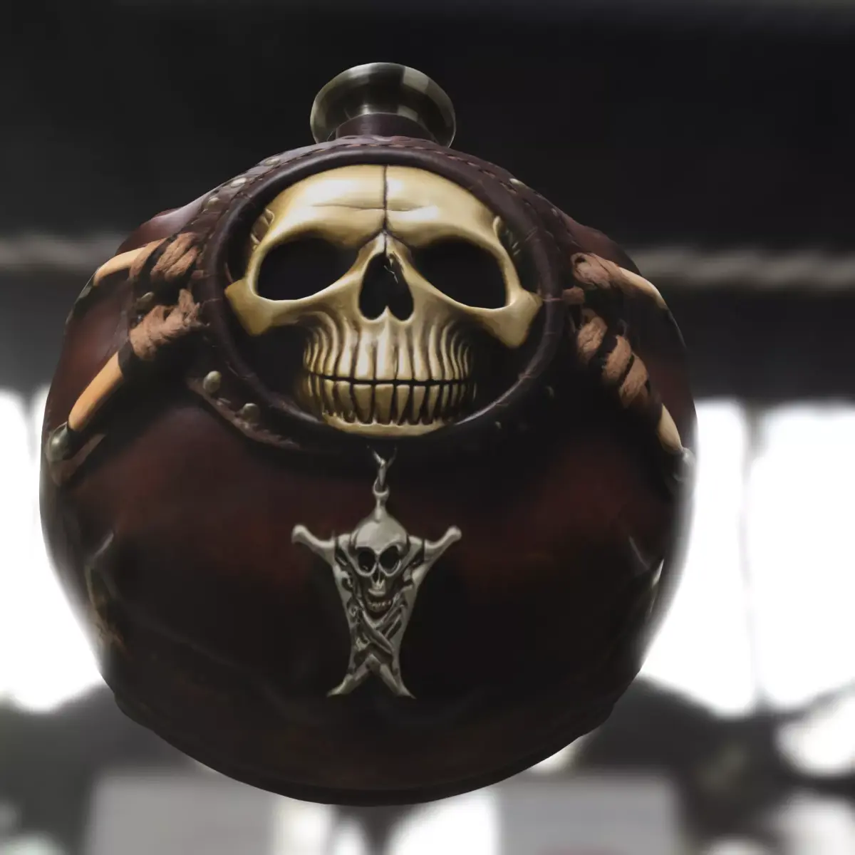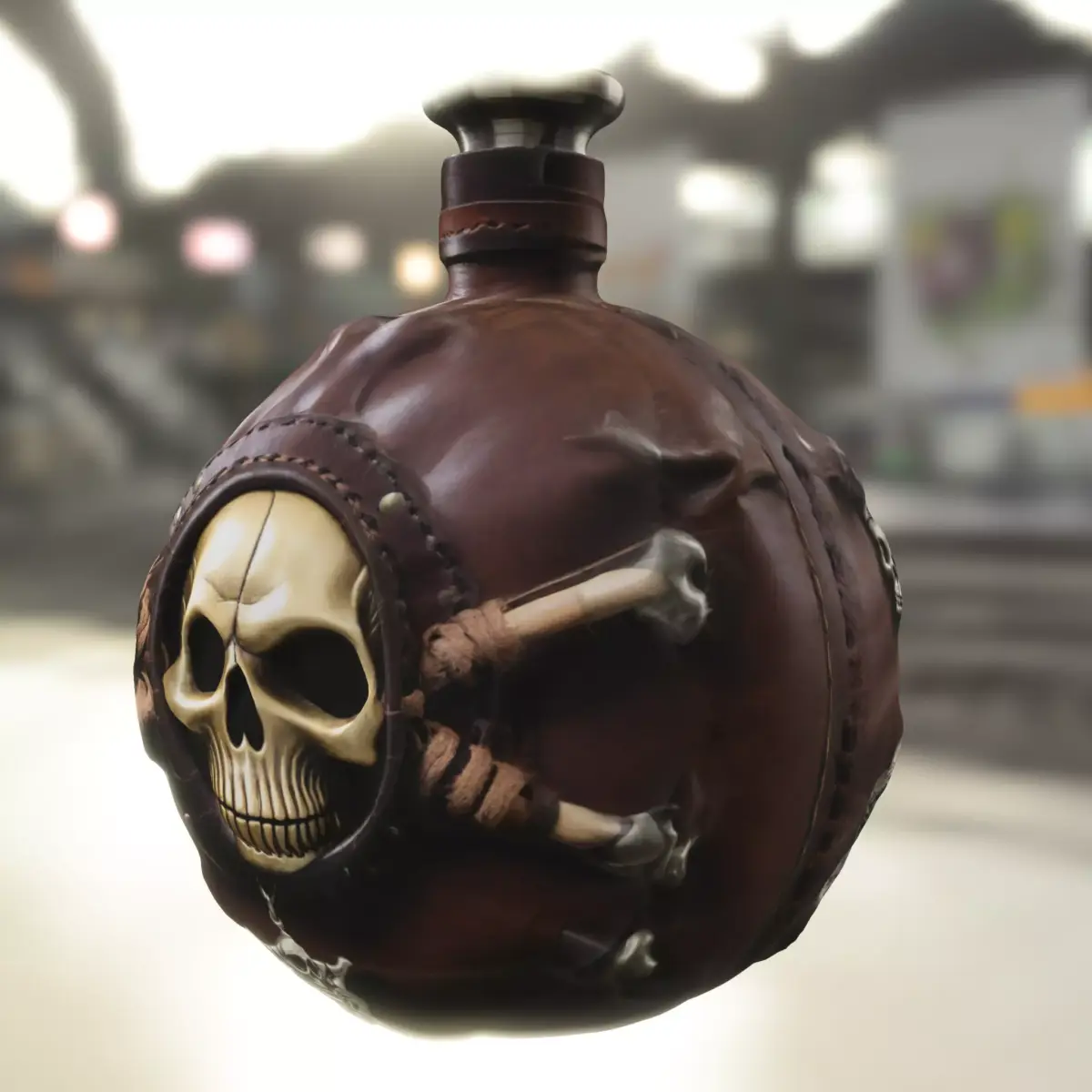 Highly detailed 3D model of a pirate-themed leather flask featuring a skull emblem and rope accents, ideal for use as an interactive item or collectible in popular games such as Sea of Thieves, Assassin’s Creed IV: Black Flag, Skyrim, The Witcher 3, and Red Dead Redemption 2. This asset includes realistic leather textures, metallic detailing, and a rugged pirate aesthetic. Fully optimized for major game engines including Unity, Unreal Engine, and Godot, and ready for high-quality physical 3D printing. Provided in multiple formats: OBJ, FBX, STL, DAE, PLY, GLB, and Blender.