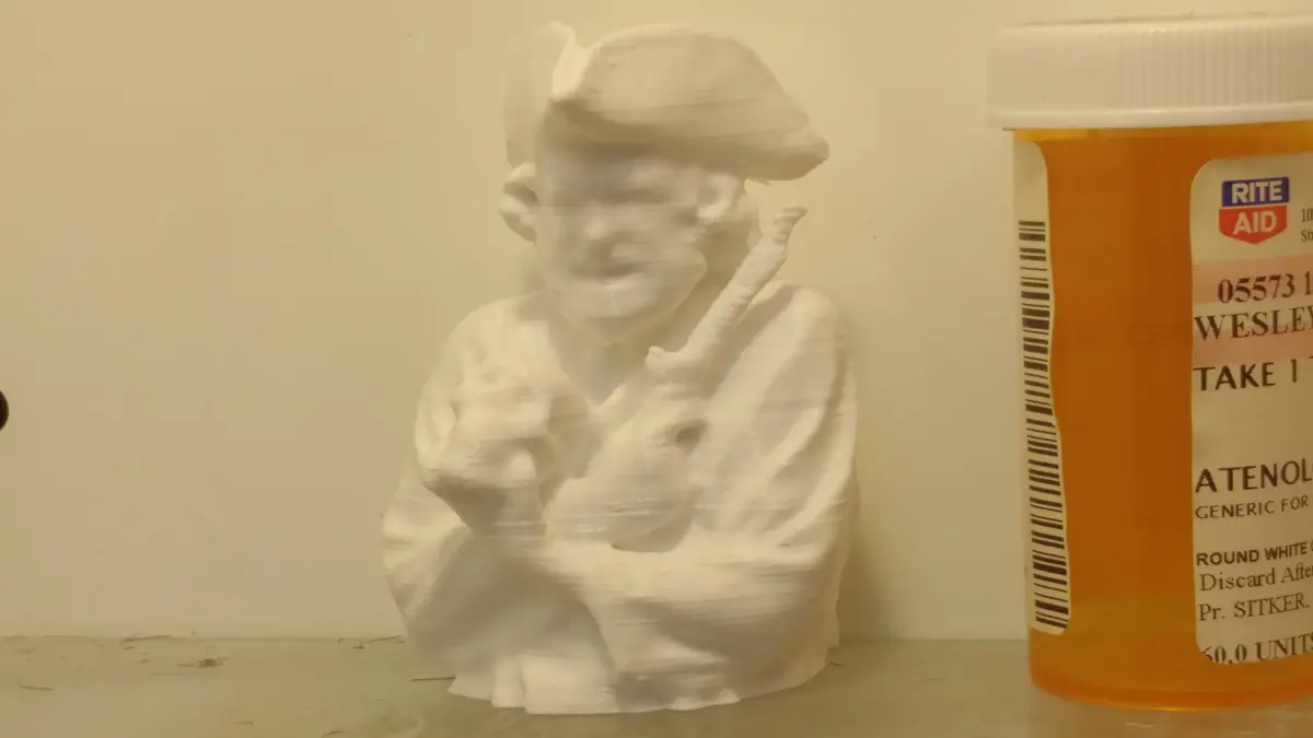 This character figurine depicts the dreaded Blackbeard The Pirate, in fine detail, holding a skull and his trusty flintlock pistol. This product was produced through 3D scanning of an actor in costume, as well as computer-assisted design (CAD). It is appropriate for kids under parental supervision as well as adults. This STL file can be scaled and printed in a variety of sizes and has been successfully printed as both a STL file and also when converted to a GCODE file in Cura. The model is appropriate for both action figure play and decorative display.