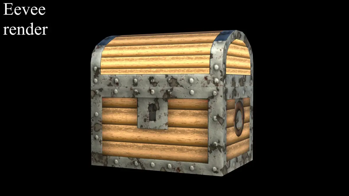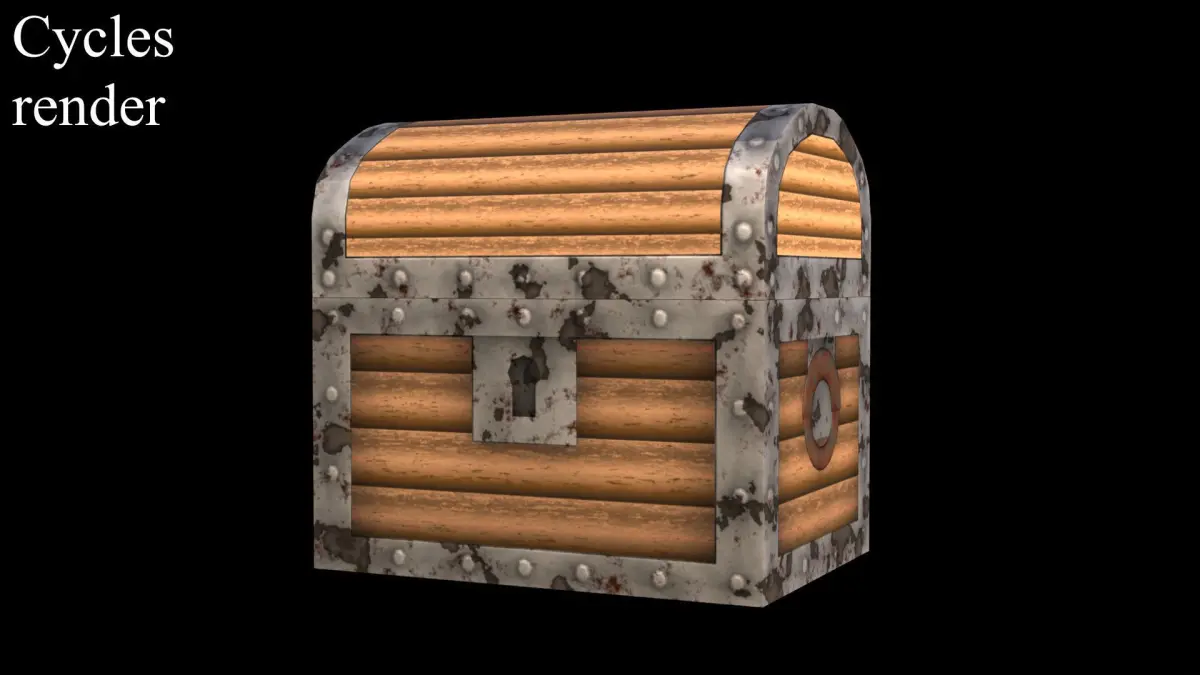 This model consists of meshes: chest and chest lid, golden coins (Plane), diamond, ruby and emerald