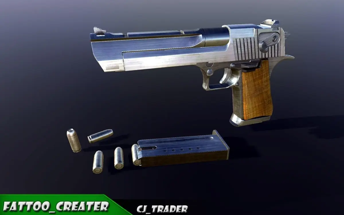 3DModels - Lowpoly desert eagle pistol model, Ammo,Bullets,Shell,Megazine.Textures - High qulity diffuse, ambient, spectular, normal map,FBR Available In - Fbx,Obj,3ds,Abc,Dae