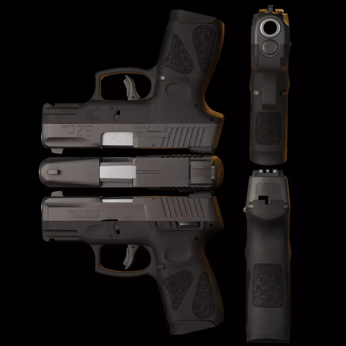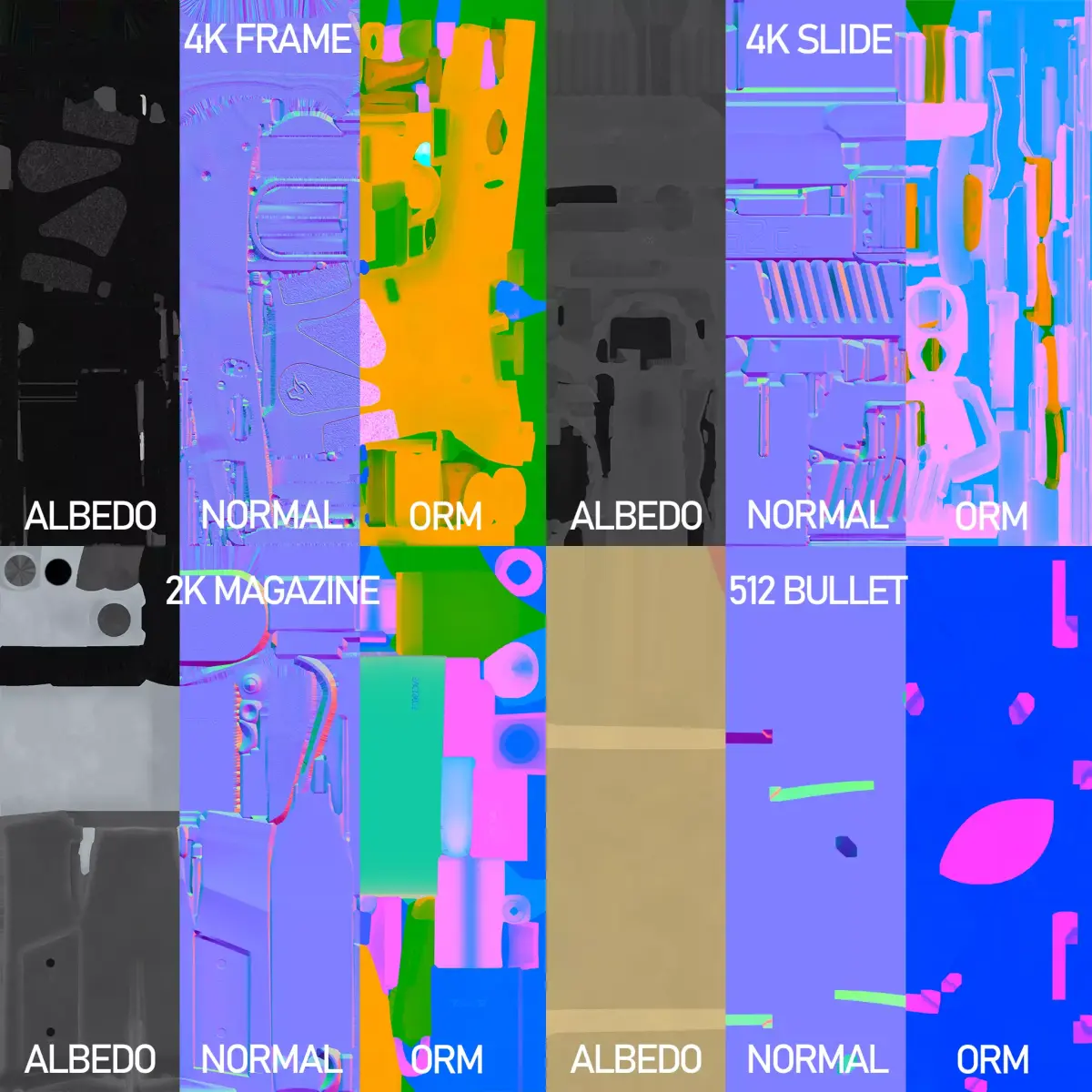 High quality game-ready pistol optimized for real-time engines (Unreal Engine, Unity, etc.);Formats included: FBX and PNG;Scale: real-world (centimeters);Approximately 12K tris for the pistol, 920 tris for the magazine, and 500 tris for the bullet;4 UDIMs used: two 4K textures for the barrel/slide and frame, 2K for the magazine, and 1K for the bullet. (OpenGL);This model don't have LODs and rigging.