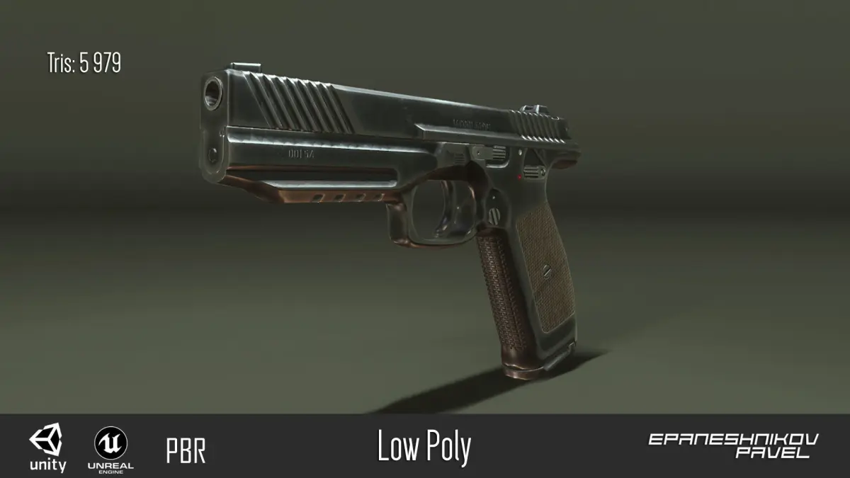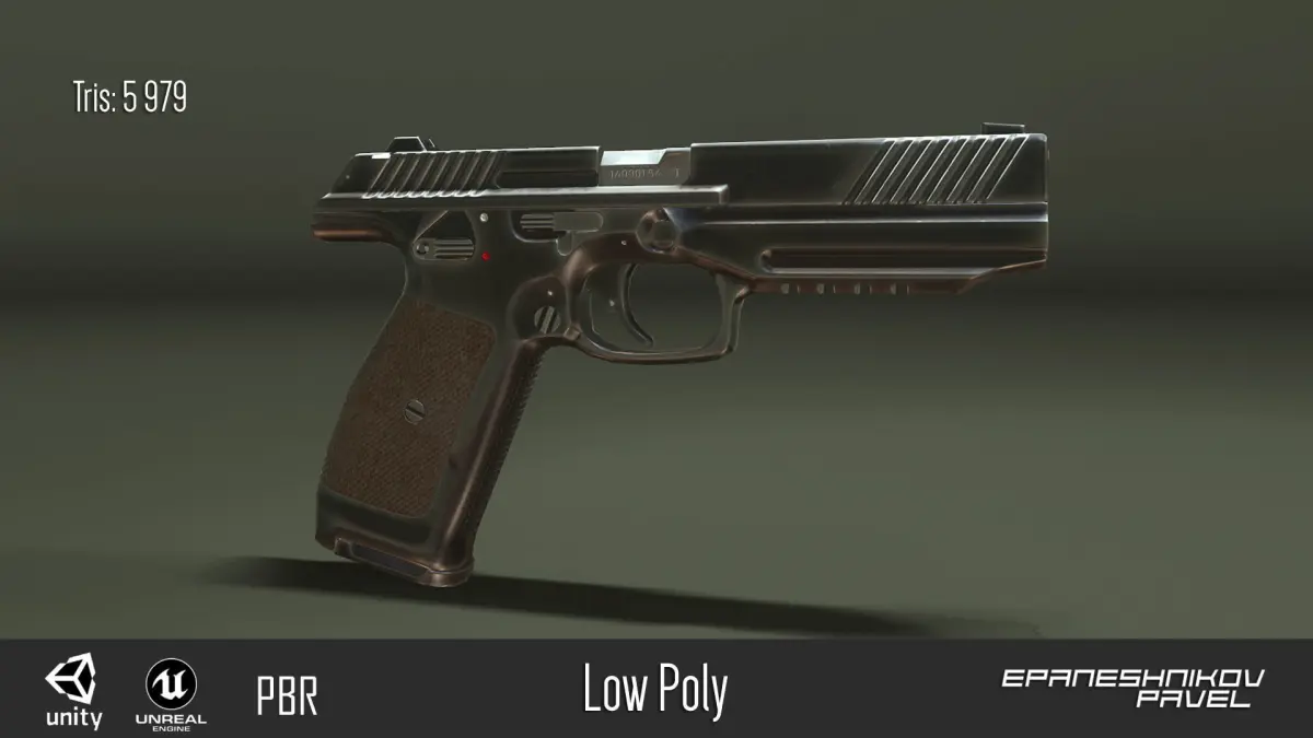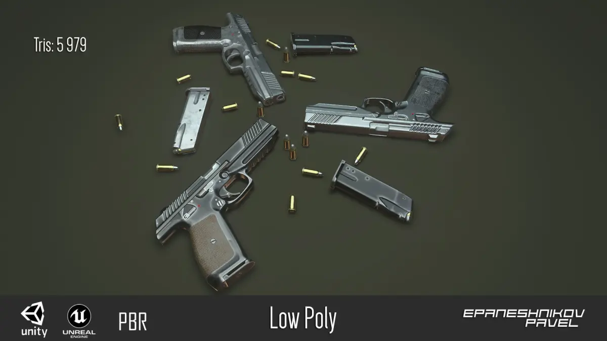 HomeCatalogpistol guns and bullets Low-poly 3D model