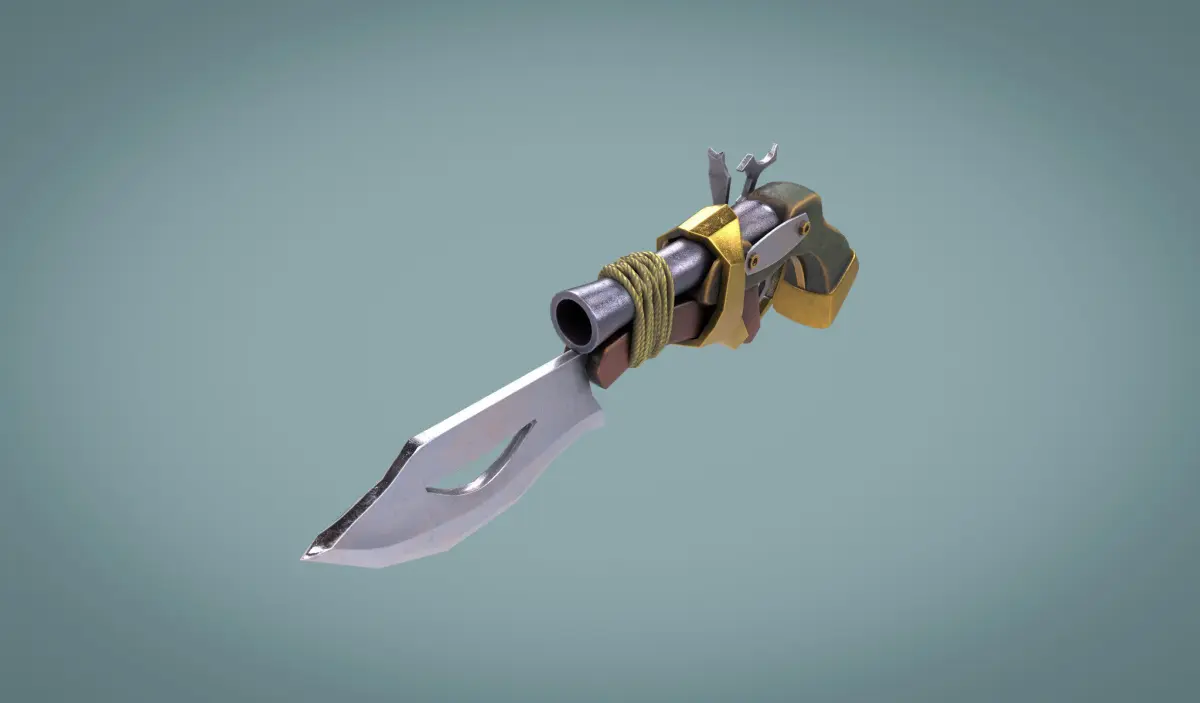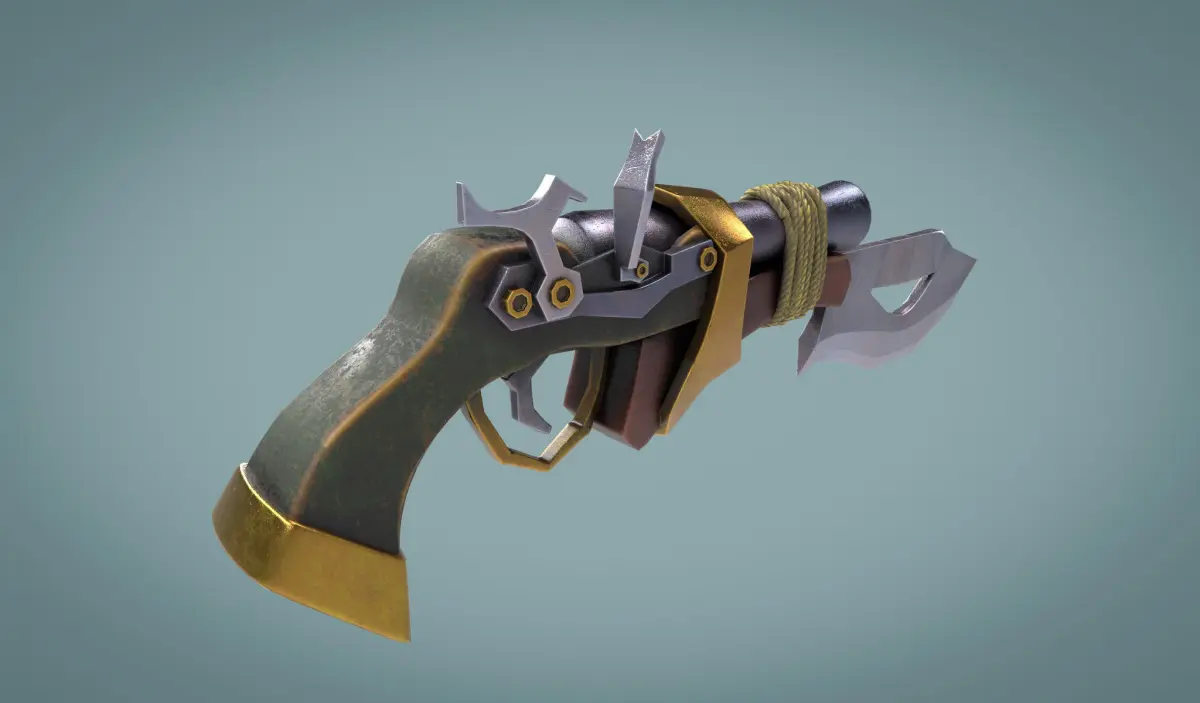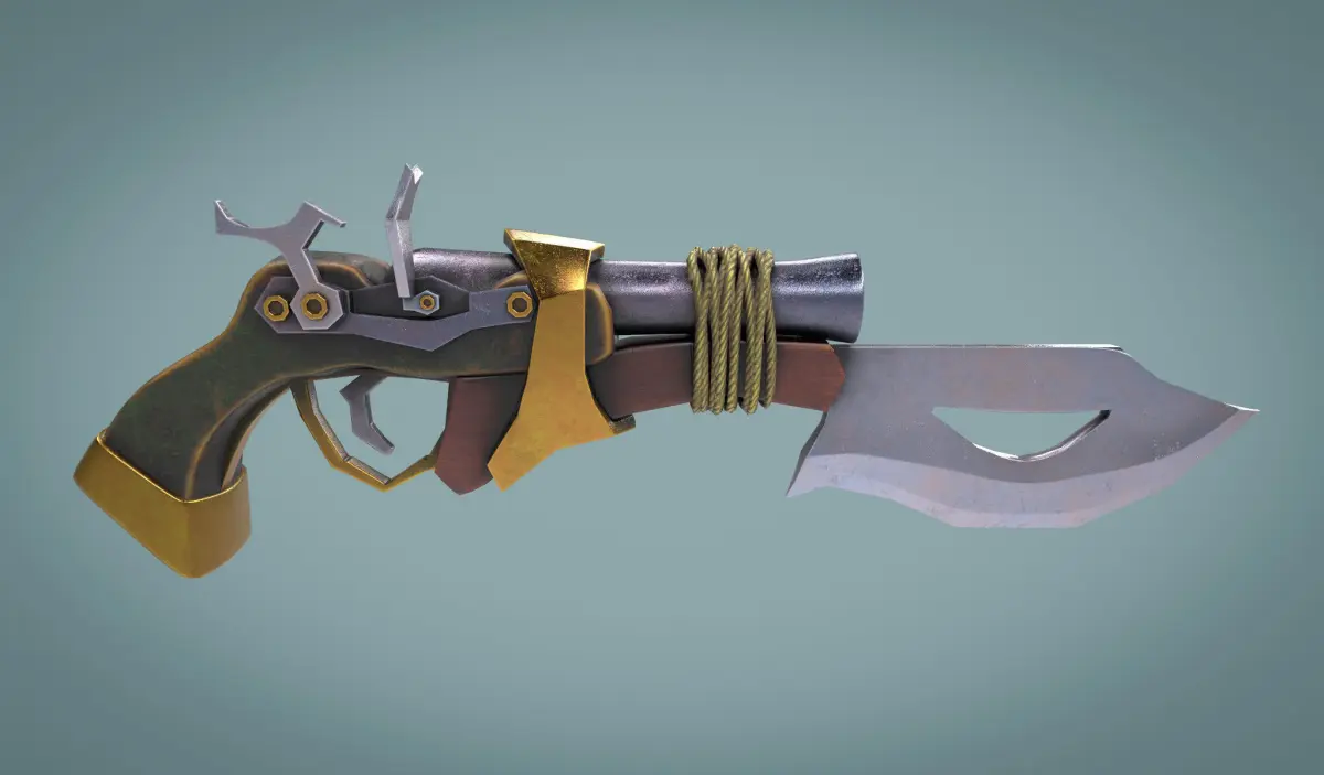 A stylized 3D model of a pistol with a blade. Ready for export to any game engine.