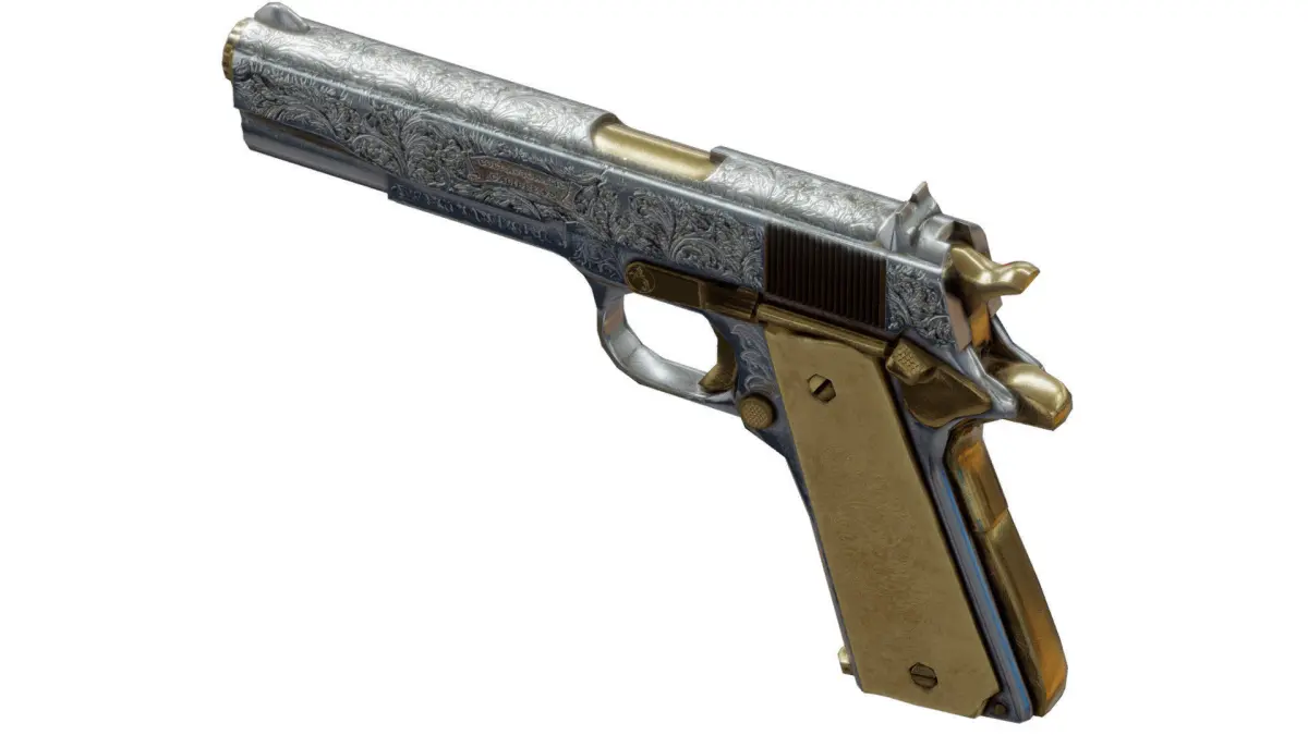 Colt Government pistol with engravings which give you no tactical advantage whatsoever.