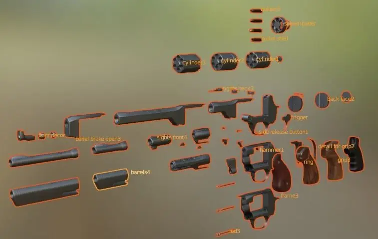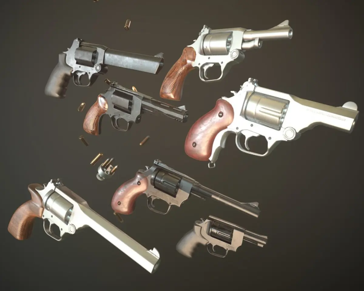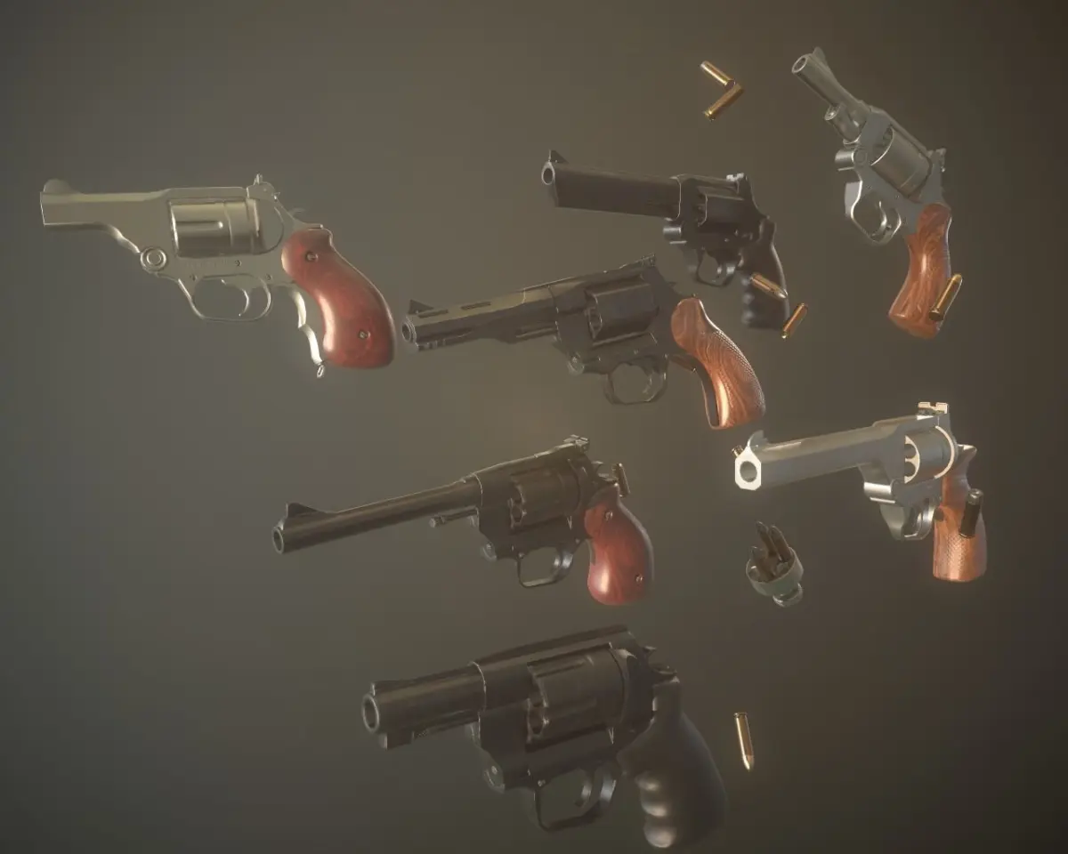 Revolver parts for creating bunch of different high powered hand cannons for VR or other first person shooters.