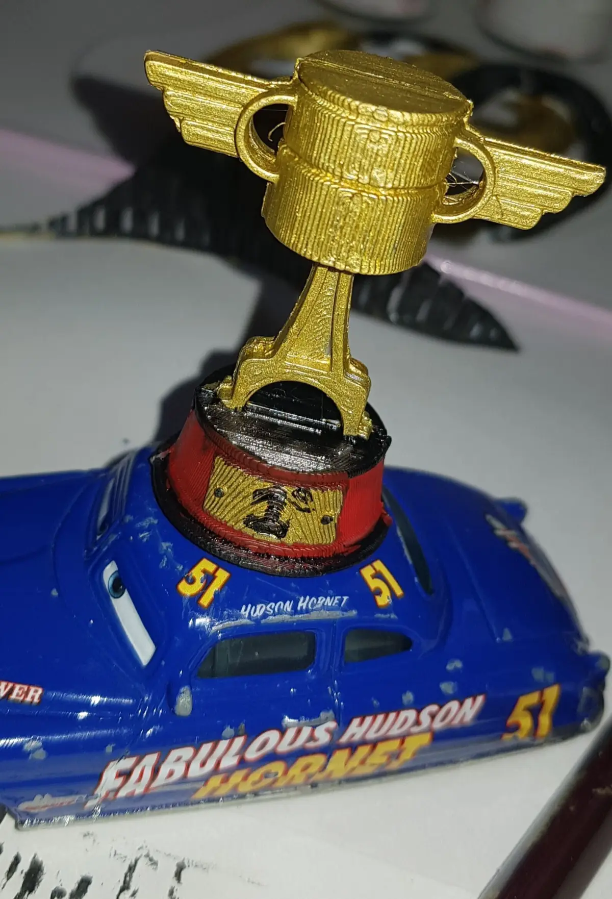 Celebrate racing glory with this 3D-printed Piston Cup, inspired by the iconic trophy featured in the Disney/Pixar Cars movie series! Perfect for fans of Lightning McQueen and the world of Radiator Springs, this model brings the magic of the racetrack into your home, office, or collector’s shelf.