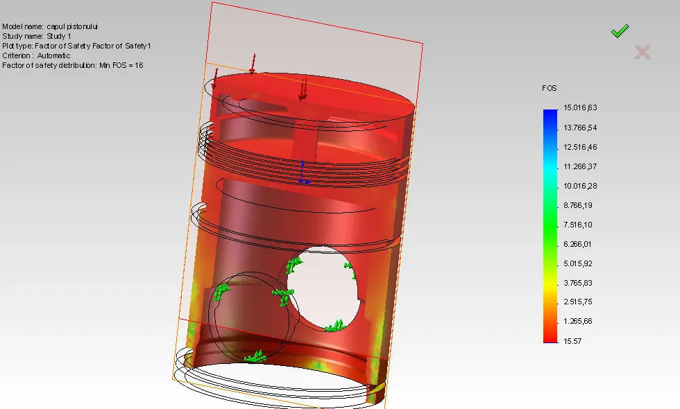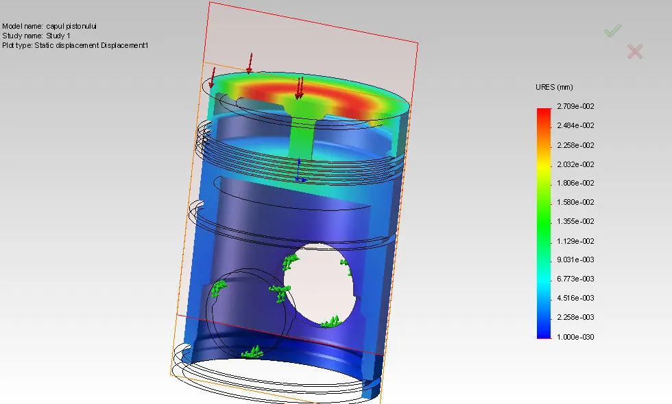 The screenshots are obtained during a structural study regarding the behaviour of the piston at different values of the working pressure.