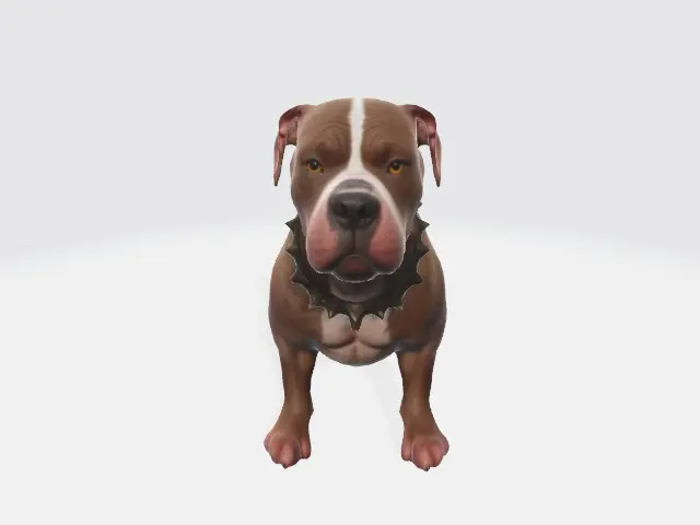 A detailed 3D model of a pitbull with a muscular build and short fur
