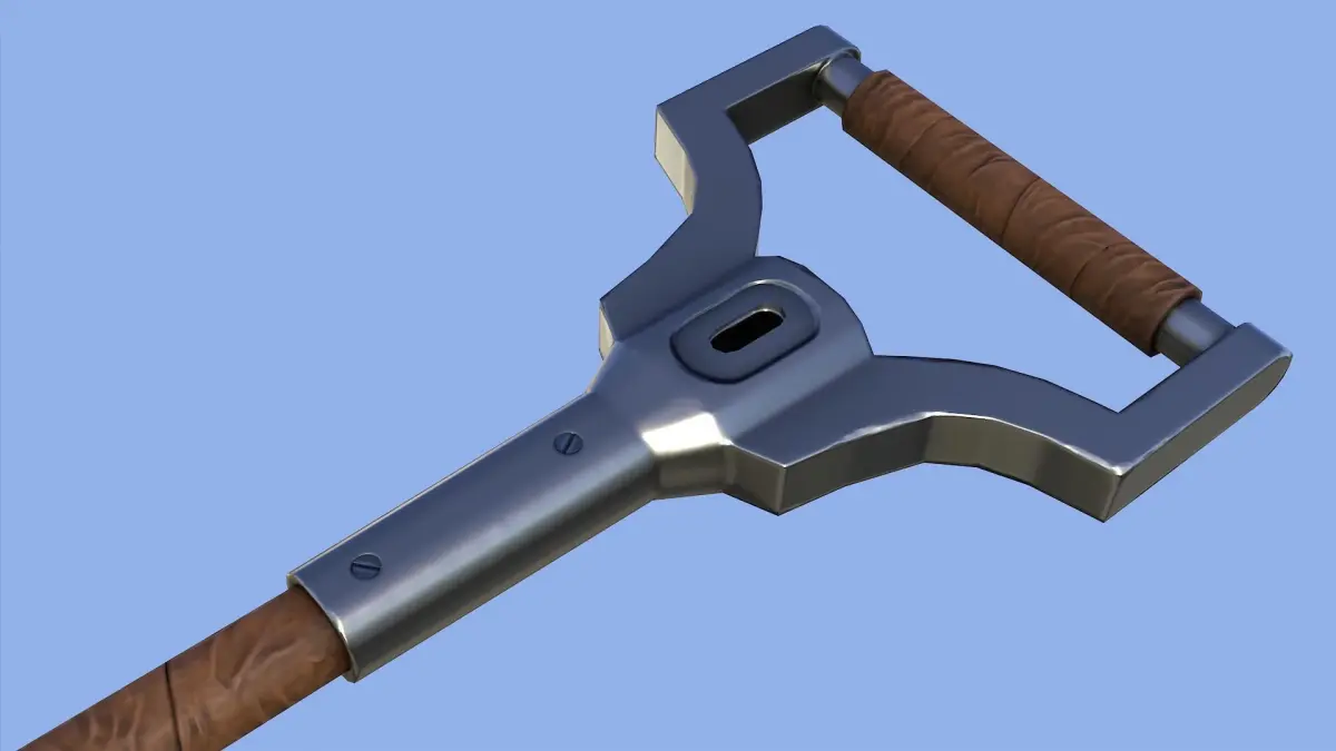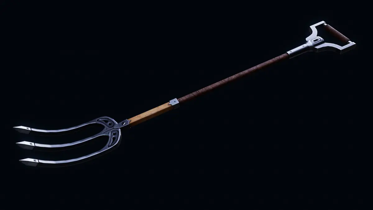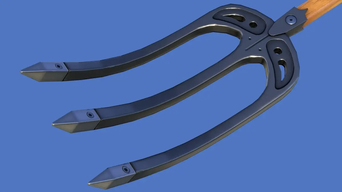 A textured pitchfork using a stellar style, perfect for use in room decoration or even used as a weapon.