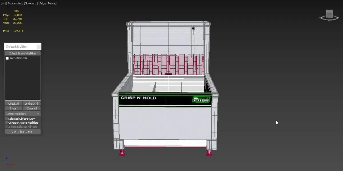 Pitco PCC-14 Crisp N' Hold Countertop Food Station is a high quality, photo realistic 3d model that will enhance detail and realism to any of your rendering projects. The model has a fully textured, detailed design that allows for close-up renders, and was modeled in 3ds Max 2018 also has 3ds Max 2015 version and rendered with V-Ray. Renders have no post-processing.