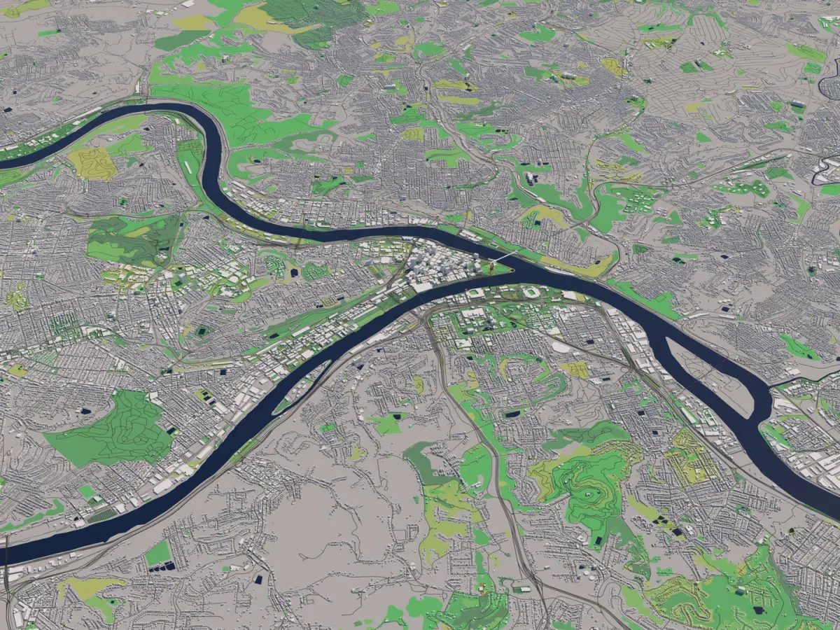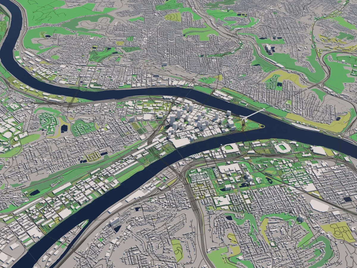 A DETAILED 3D MODEL CITY MAP OF PITTSBURGH, PENNSYLVANIA: