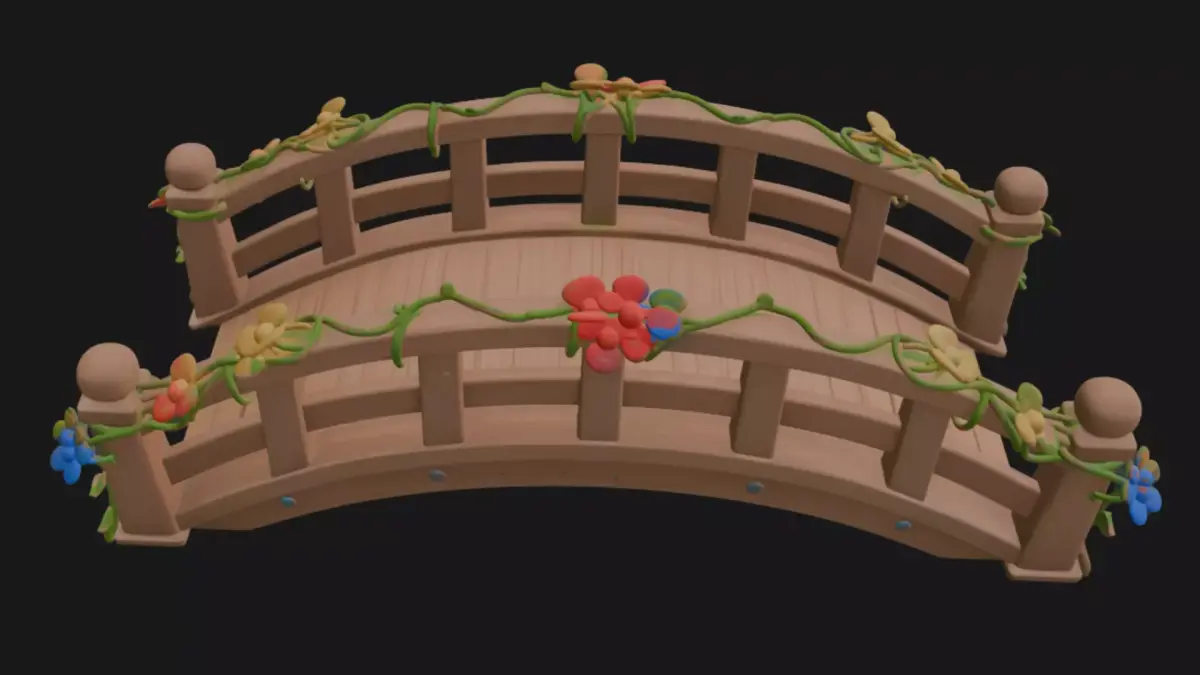 bridge garden-bridge small-bridge wooden-bridge village-bridge realistic-bridge cartoon-bridge pixar-style curve curve-bridge