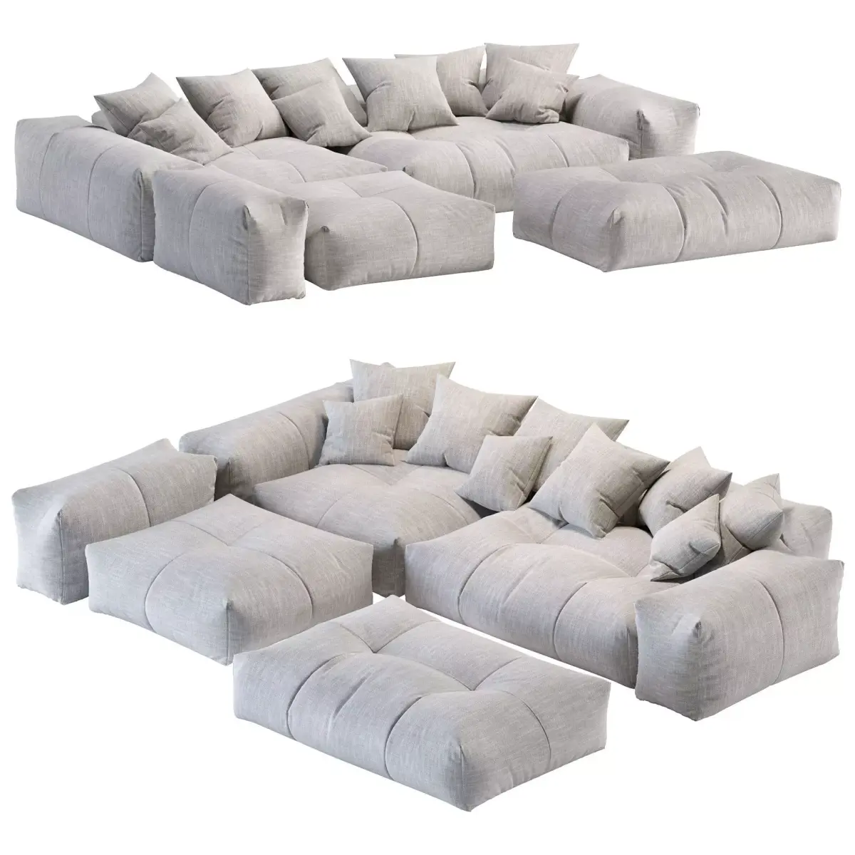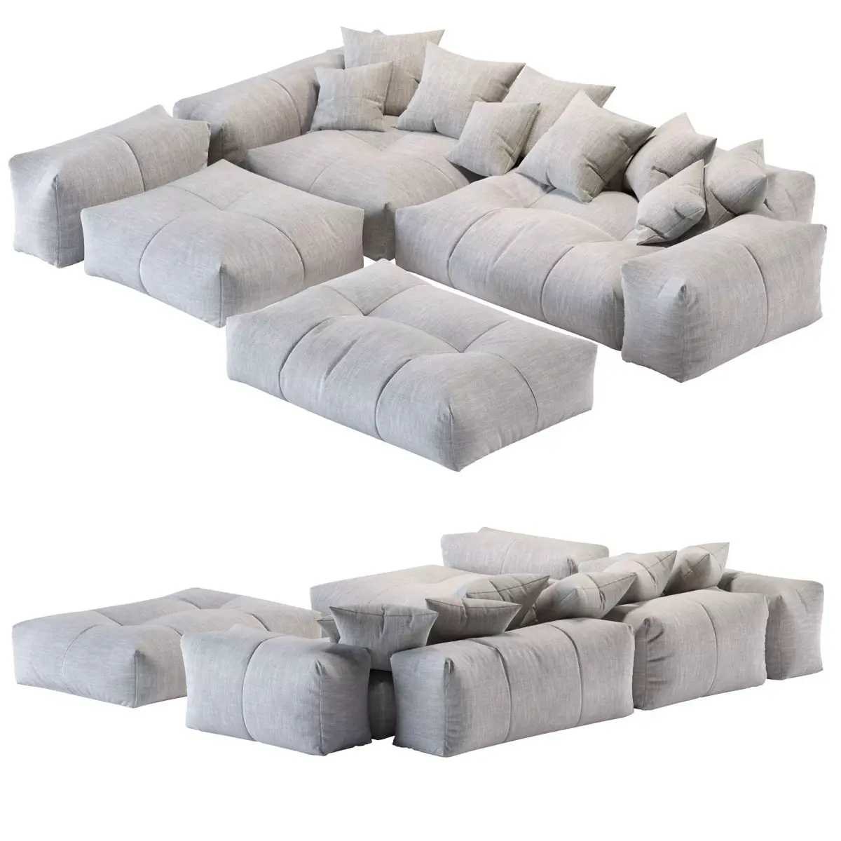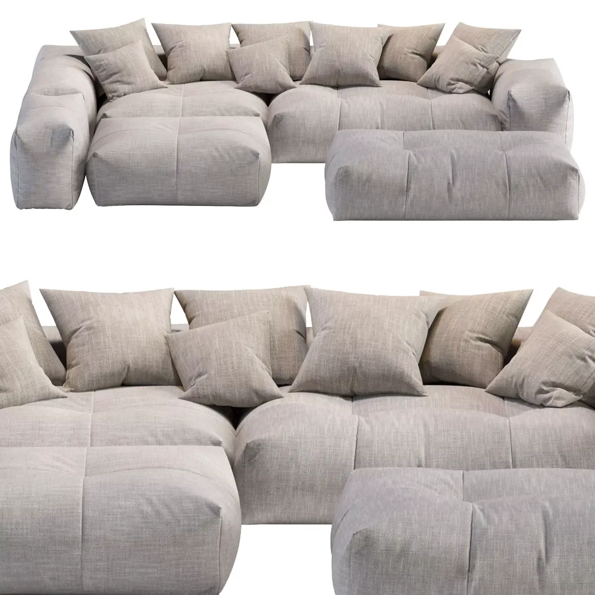 The sophisticated Pixel corner sofa by Saba, created by Sergio Bicego for the famous Italian brand, is a masterpiece of flexibility and style. This designer work of art offers the freedom to combine its elements creatively thanks to an ingenious joint designed by Saba Italia. This feature allows armrests and backrests to be deconstructed, allowing you to reassemble them at will to personalize the seating experience in a unique way. The seats, padded with fine washed and sterilized goose down, are embellished with refined quilted stitching, giving the Pixel sofa a timeless elegance. The special shape of the backrests and armrests makes it possible to maintain small overall dimensions, both in width and depth, without compromising its aesthetic beauty. The sofa's versatility also extends to its practicality, as its cover is fully removable for easy maintenance and to offer you the chance to renew its style whenever you wish. The frame of the Pixel corner sofa by Saba is made of wood, padded with goose down for long-lasting comfort and upholstered in high-quality Tundra fabric. Black ABS feet provide stability and a modern touch to the overall design.