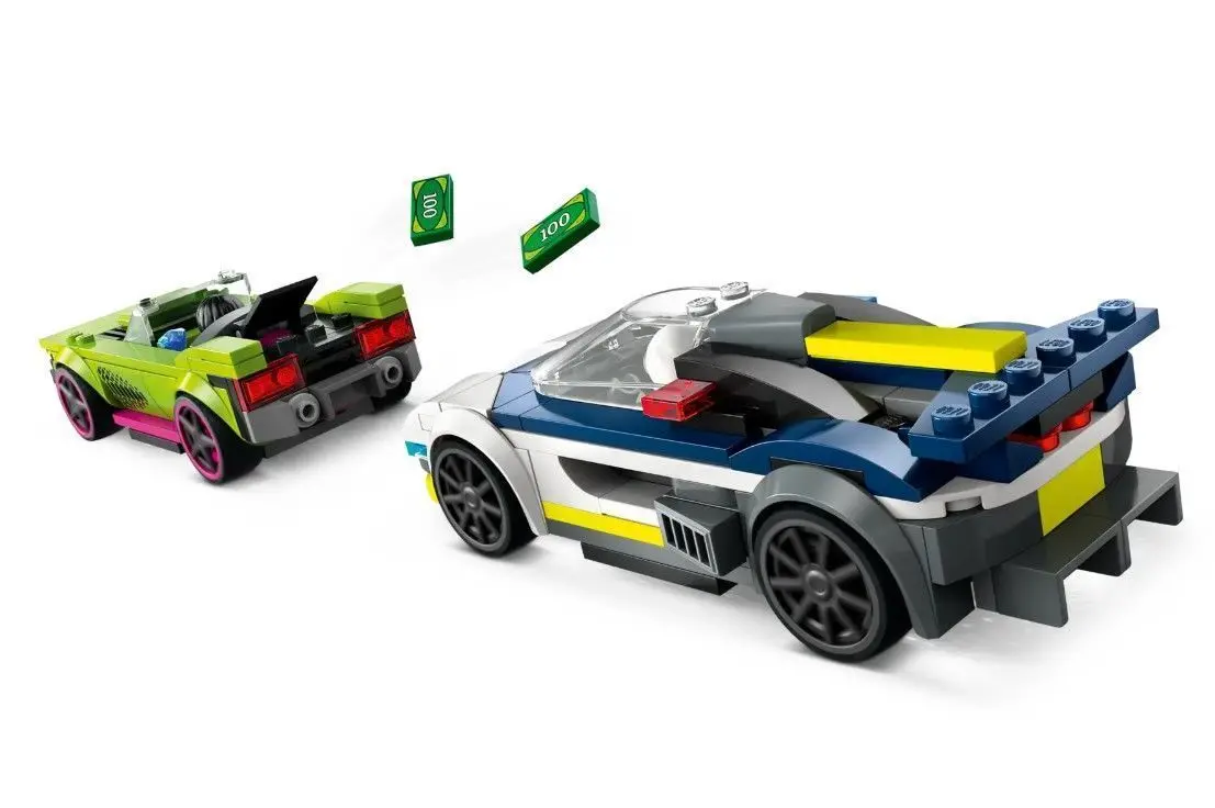 This exciting, snap-together set features a sleek police car equipped for pursuit and a powerful muscle car ready to outrun the law. Perfect for action enthusiasts and builders of all ages, this set brings the adrenaline of a classic chase scene to life.