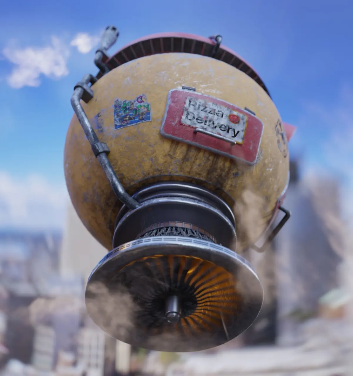A flying robot that delivers Pizza.