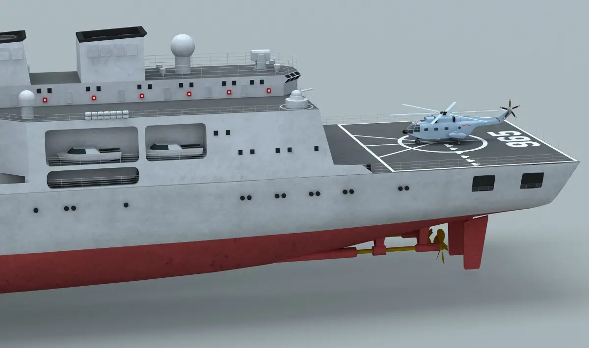 This model faithfully portraits the PLA Navy Type 901 Supply Ship.Created in: 3dsmax 2016.All renders shown here were created with the 3ds Max V-Ray renderer.Optimized for: professional system training, high end animation, and still display projects.