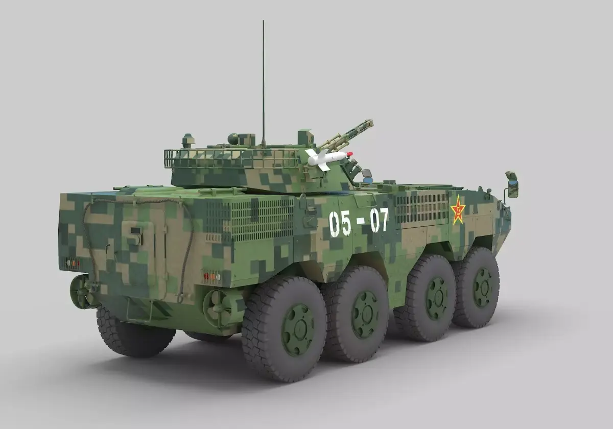 The ZBL-09 is a Chinese wheeled armored fighting vehicle.It is a recent People's Republic of China produced family of 8x8 wheeled Infantry Fighting Vehicles. It's a modular design which claims to be able to field an APC model, an IFV model, an anti-tank gun model with an export variant, an Engineering model, a 122 mm self propelled howitzer model, a 155 mm self propelled howitzer model, an air defense model, a self-propelled mortar model, a recon model, a command vehicle model, and an export version dubbed the VN-1.