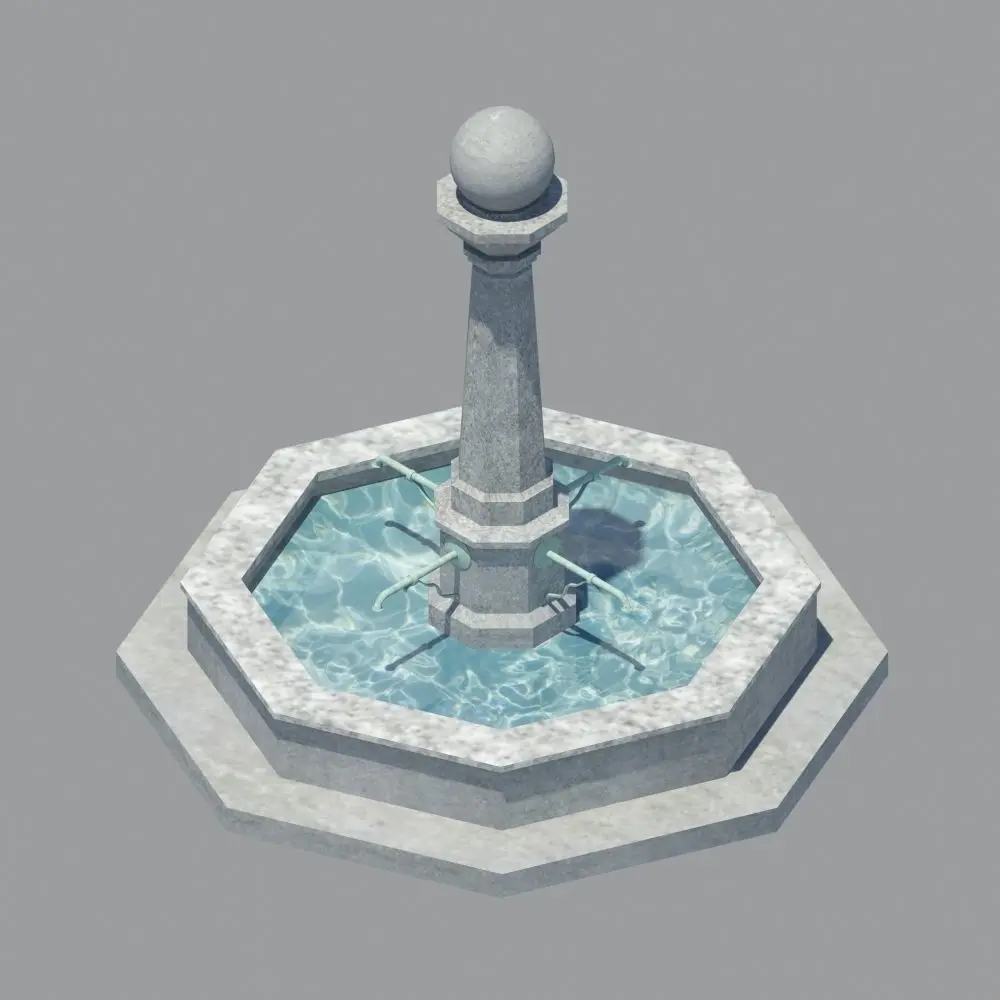 - 5 different separated objects for easy modification (basin, column, sphere, 4x faucet, water)