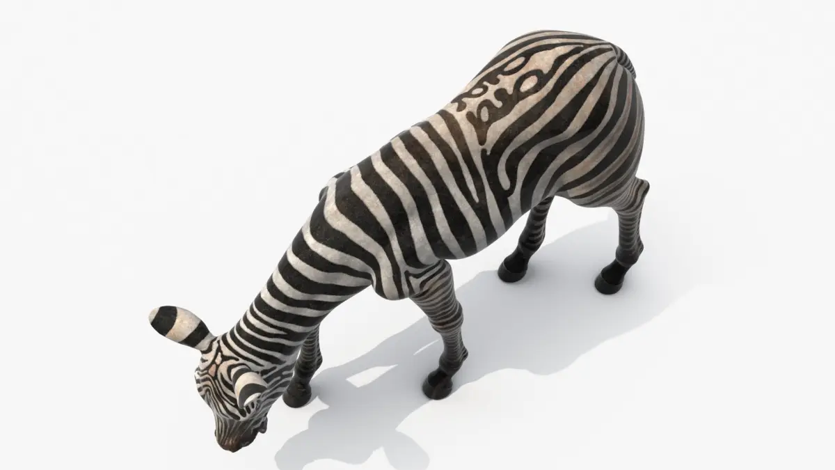 This model captures the zebra with its distinctive black and white striping and lifelike pose. The intricate details of the fur texture and anatomy reflect the graceful movements of a zebra as it grazes. The realistic design allows for close inspection of the zebra's unique patterns and form.
