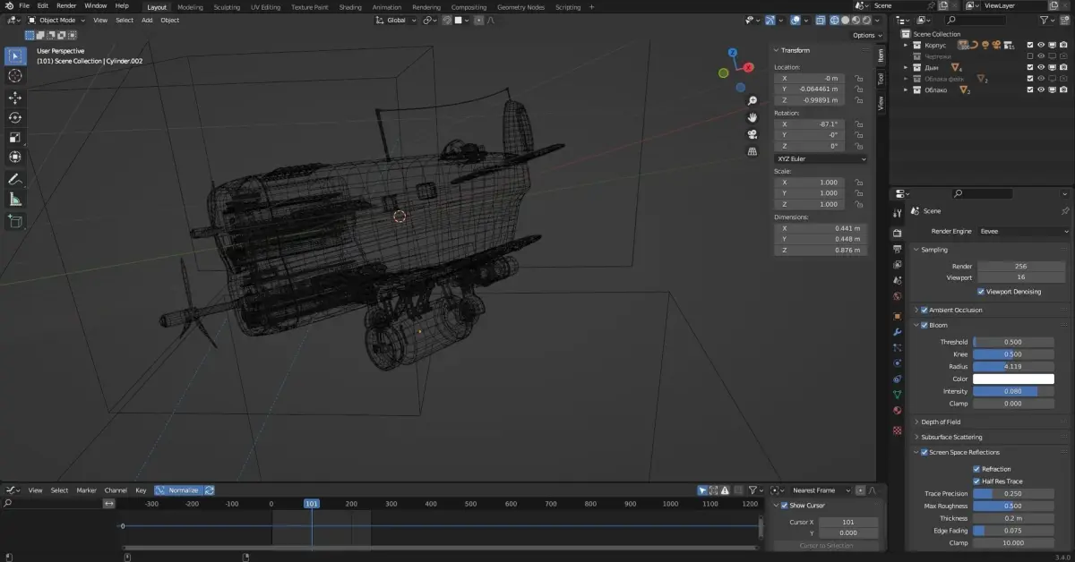 High-poly model, all parts are conveniently divided into sections, all parts have a texture and paint, there is a full adjustment for the size of scratches, dust and other elements on the plane. Qualitative mesh of quadrilaterals.