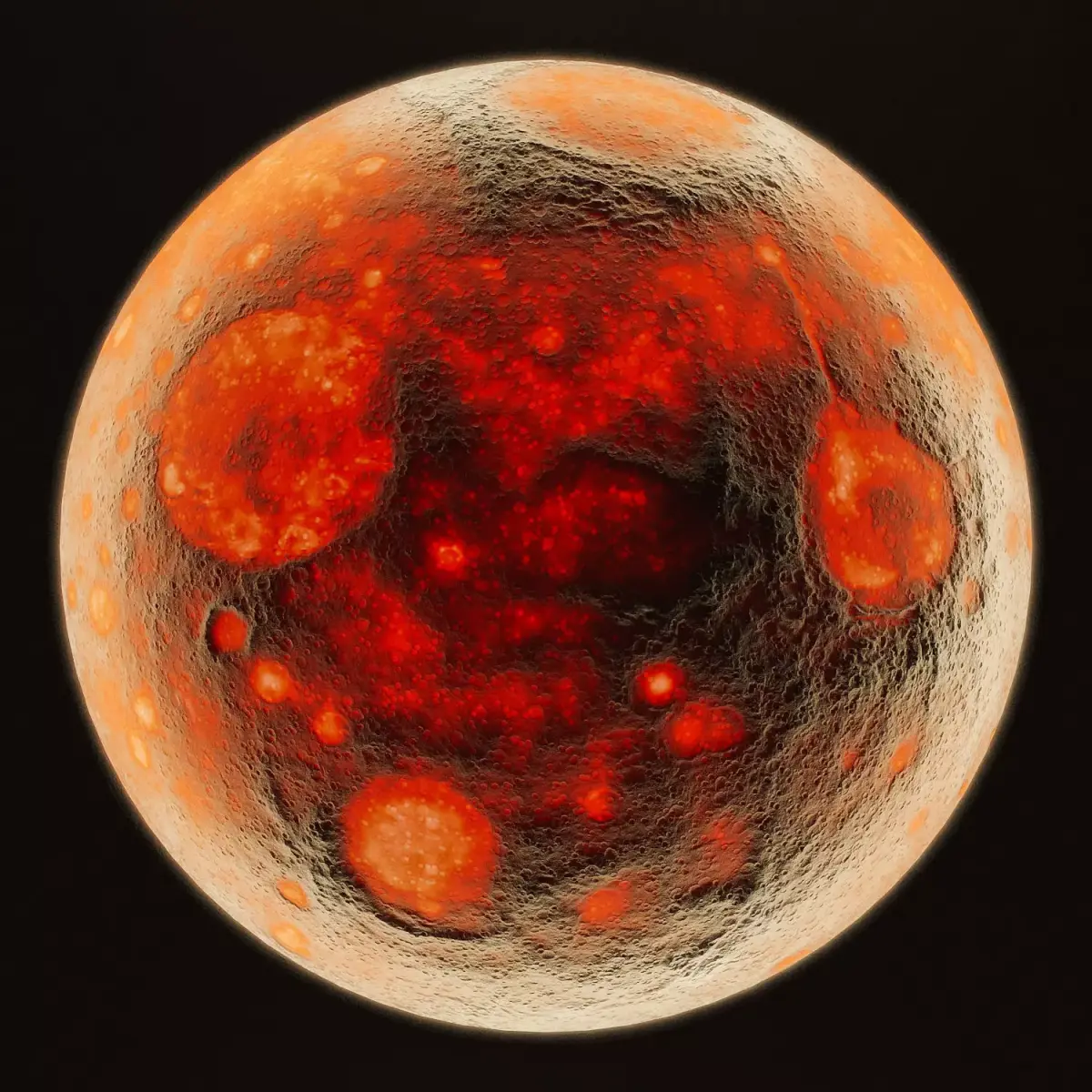 Plaster wall or ceiling decoration. Hand-painted illuminated planet, material: plasterWall size: 3600 x 3600 mmPlanet diameter: 2000 mmTextures: 4096 x 4096To illuminate the planet's interior (lava effect), enable the self-illumination map
