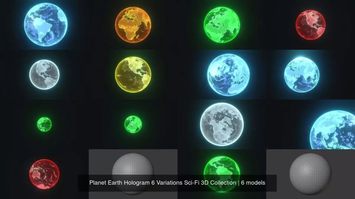 Planet Earth Hologram 6 Variations Sci-Fi 3D Collection is completely ready to be used in your games, animations, films, designs etc.