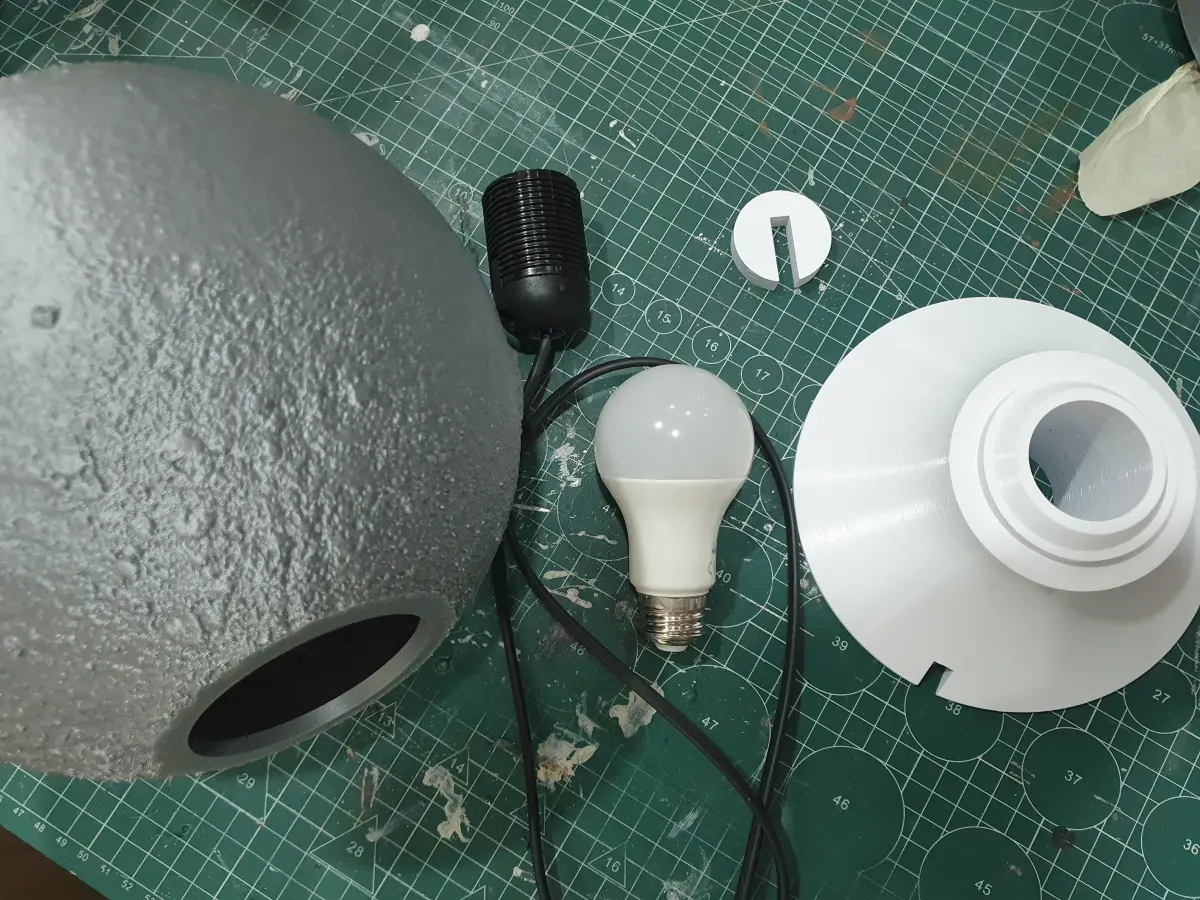 Moon Lamp, first of the Planet Lamp series. There is no paint. Thanks to its 3D modeled reliefs, when a light bulb turned on inside, it gives the silhouette of the moon. A nice decoration in my opinion :) Perfect for astronomy and astrology lovers.