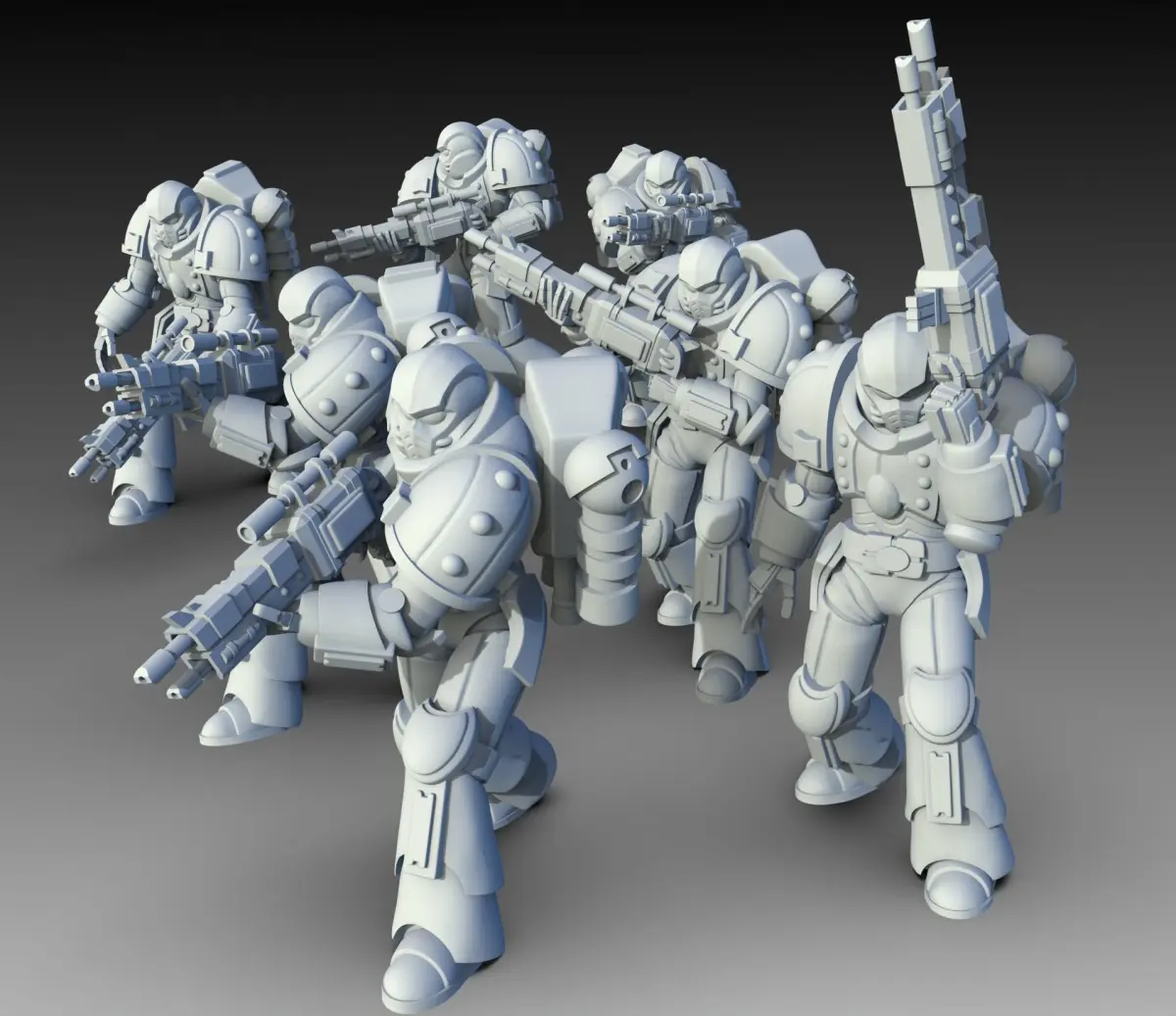 This unit has 6 miniatures in different positions plus their mirror versions, giving a total of 12 ready-to-print Planetary Raiders miniatures.