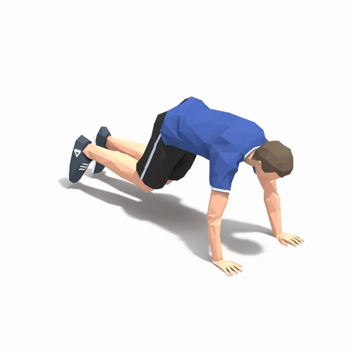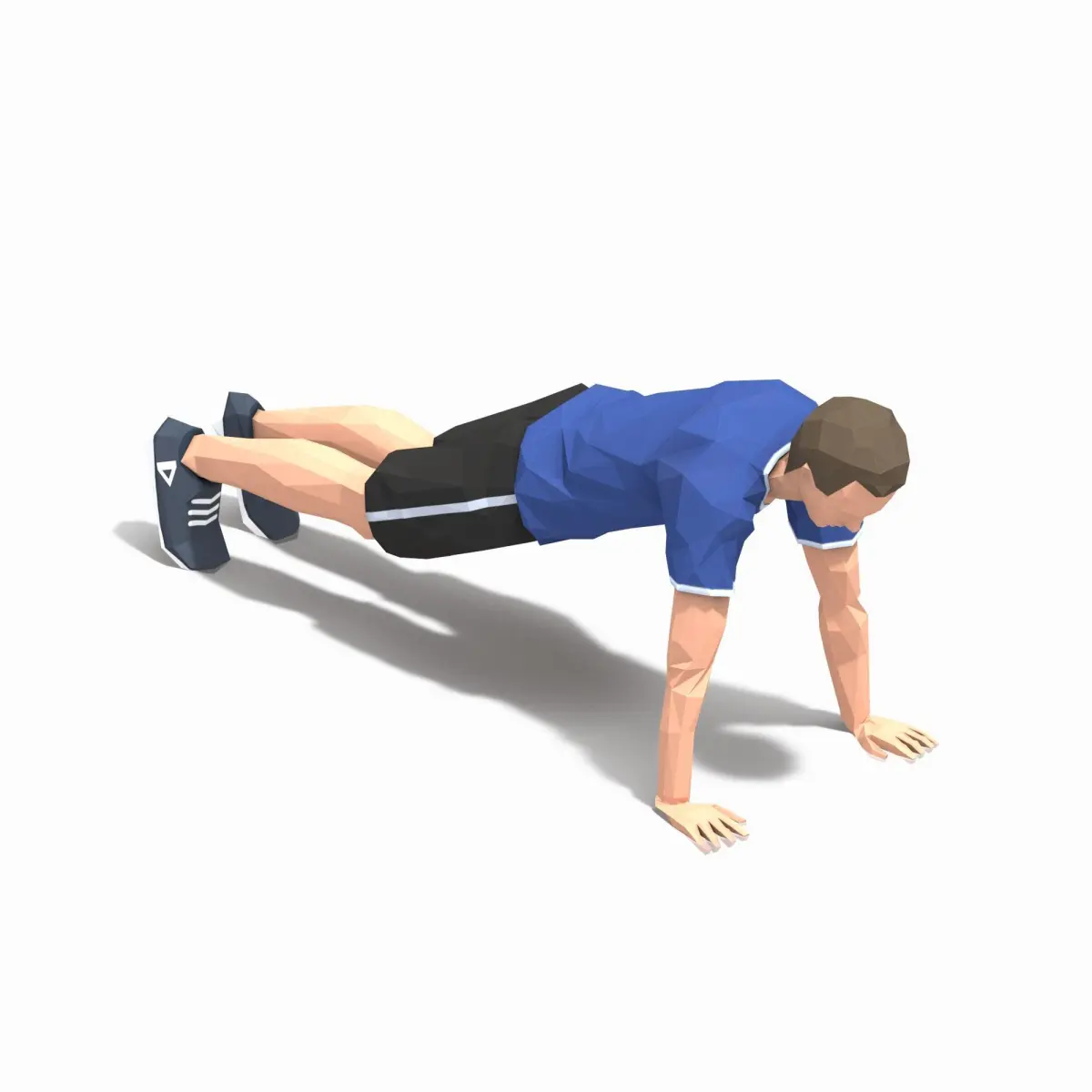 Animations of exercise Man Low poly3d model in flat surface style.Animation created in CAT system and exported to FBX files for loop sequence.Extra textures as bonus