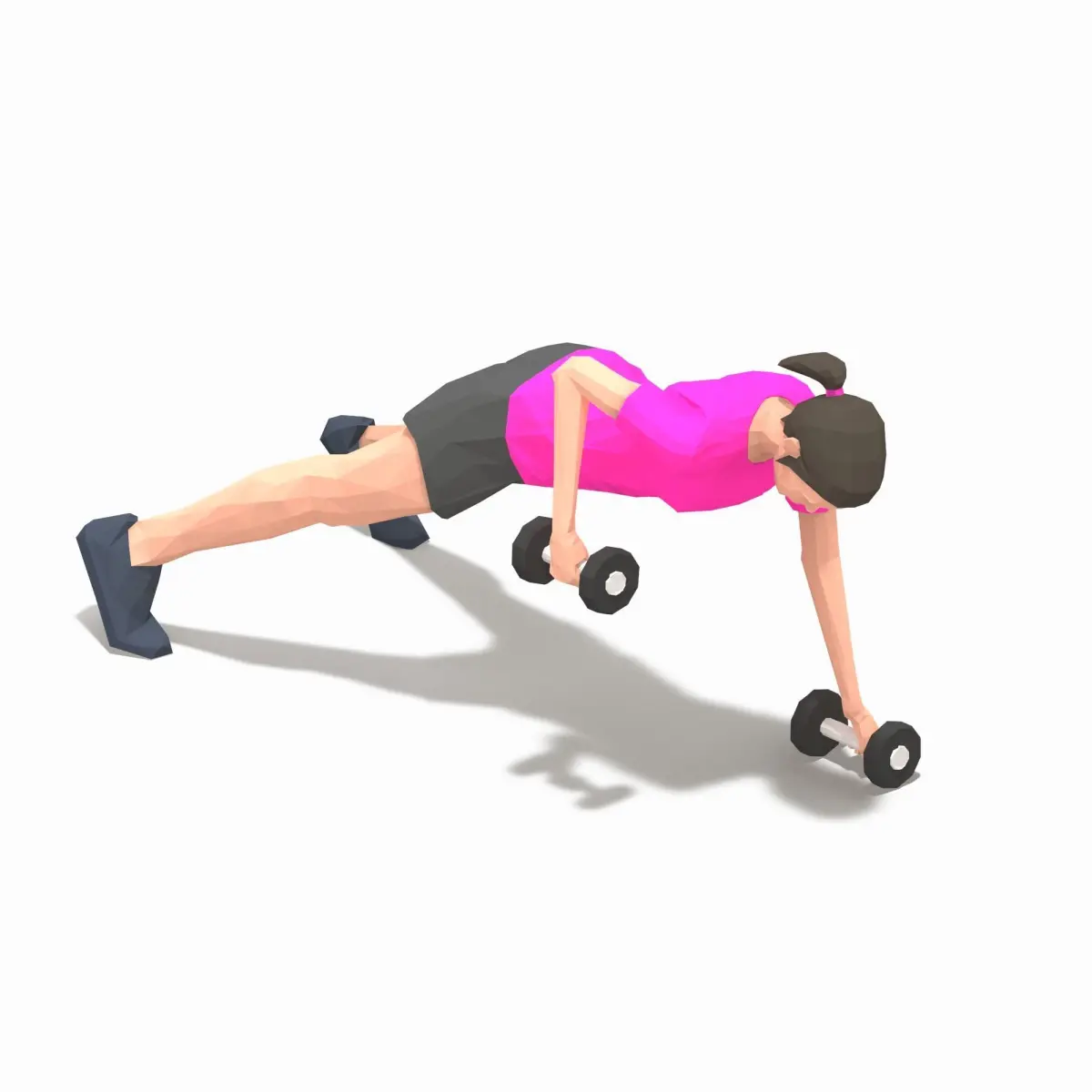 plank row Exercise Woman Animation Low-poly 3D model