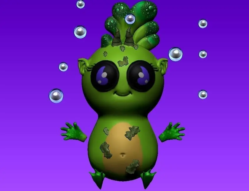 plankton creature with bubbles in water 3D model