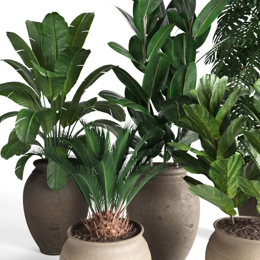 -Plant Collection_RPM_02 Platform: 3dsMax 2018 + obj+FBX Render: Vray+Corona -Polys: 346053-Verts: 444577-The set includes: -Zamioculcas -Swiss cheese plant -Sansevieria -Nephrolepis exaltata -Aspidistra -Vases with gold and concrete materials -Dimensions Height: 103, 107, 105, 70, 82