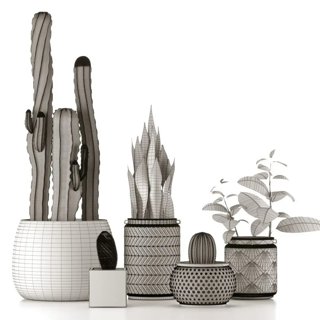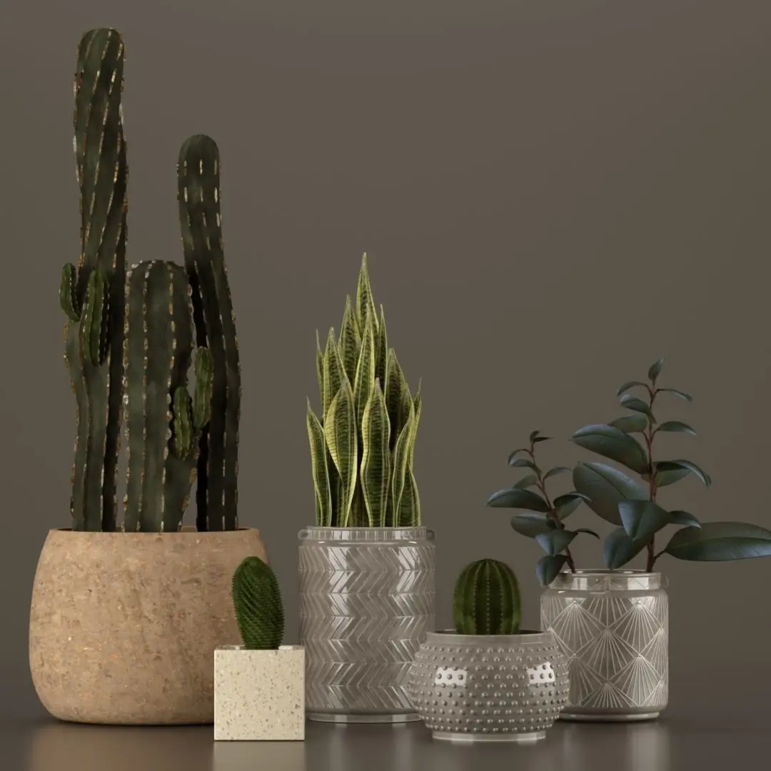Plant Collection two cactus plants in vase 3D model