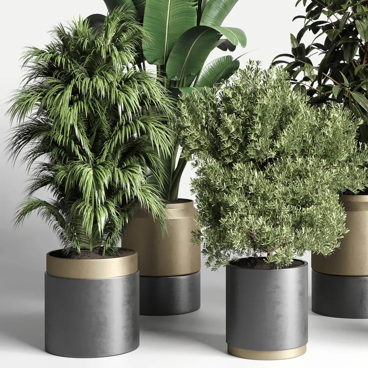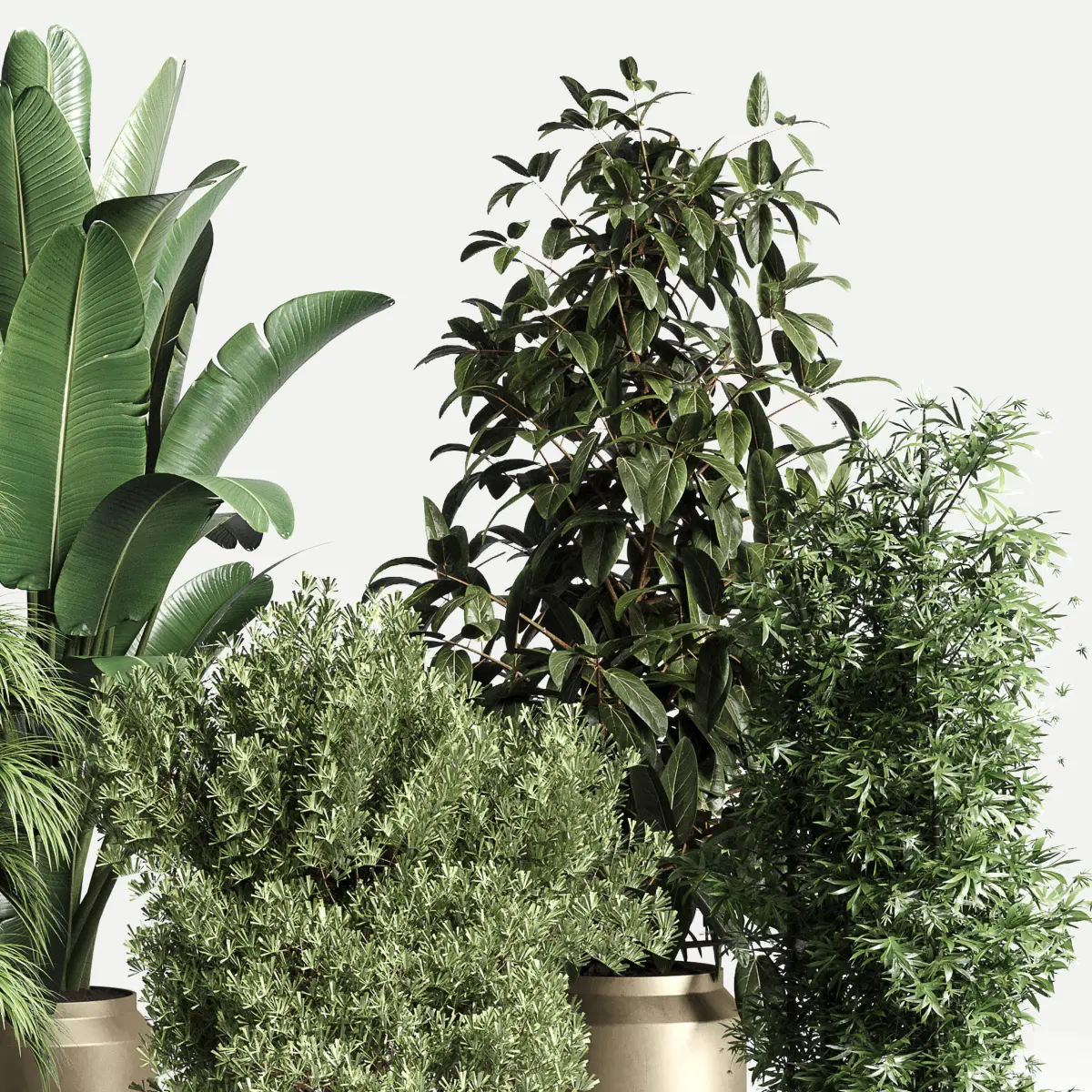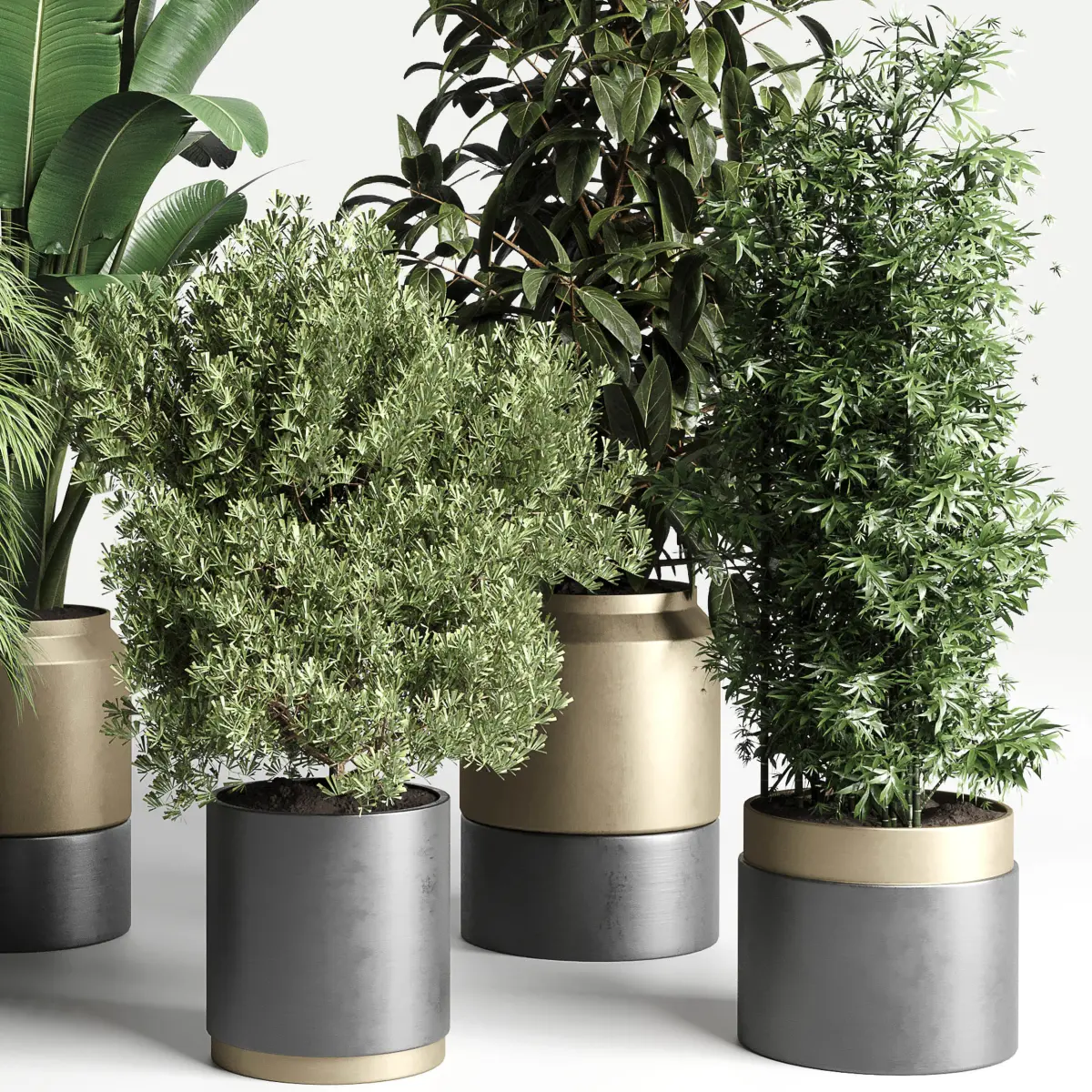 plant ficus rubbery ravenala plam bamboo metal dirt vase 3D model