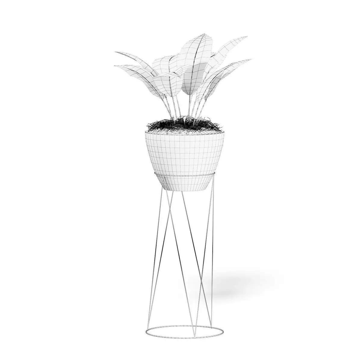 Plant on tall rack 3d model placed in white ceramic pot. Compatible with 3ds max 2010 (V-Ray, Mental Ray, Corona) or higher, Cinema 4D R15 (V-Ray, Advanced Renderer), Unreal Engine, FBX and OBJ.