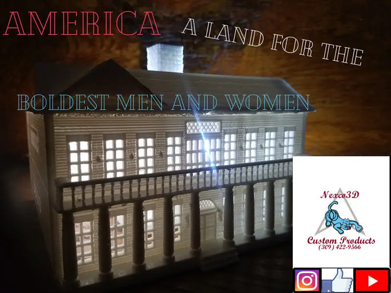 A small replica of a Plantation house that I designed from pure thought. I did not look at a picture, nor have I ever even been to a house that remotely resembles this replica. I designed the Plantation house for my love of architecture and for history. It was a fun design to make, but it does take around 49 hours to print one. Prints in one full model, no assembly required. The example shown in the picture was printed at %35 of the original designs stature.