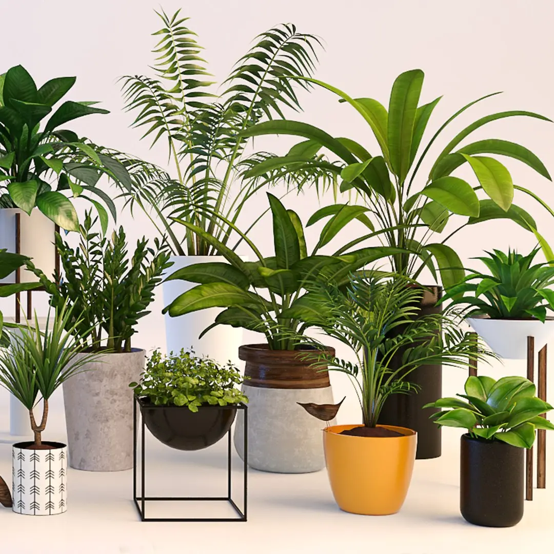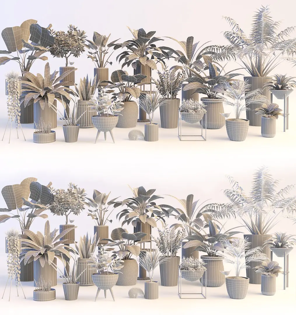 You can find 20 different plants here. All textures are in archive file. All plants are low-poly. If you need more details (near foreshortening) - add shell & turbosmooth (more polygons).