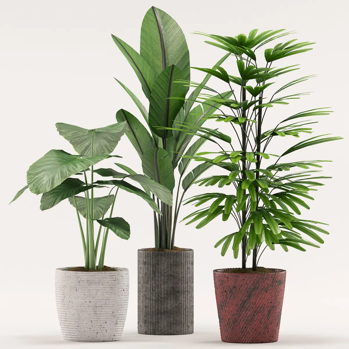 Plants 107.Colocasia esculent, palm and banana plant with various types of pot.Max 2012 and 2015 with fbx file.