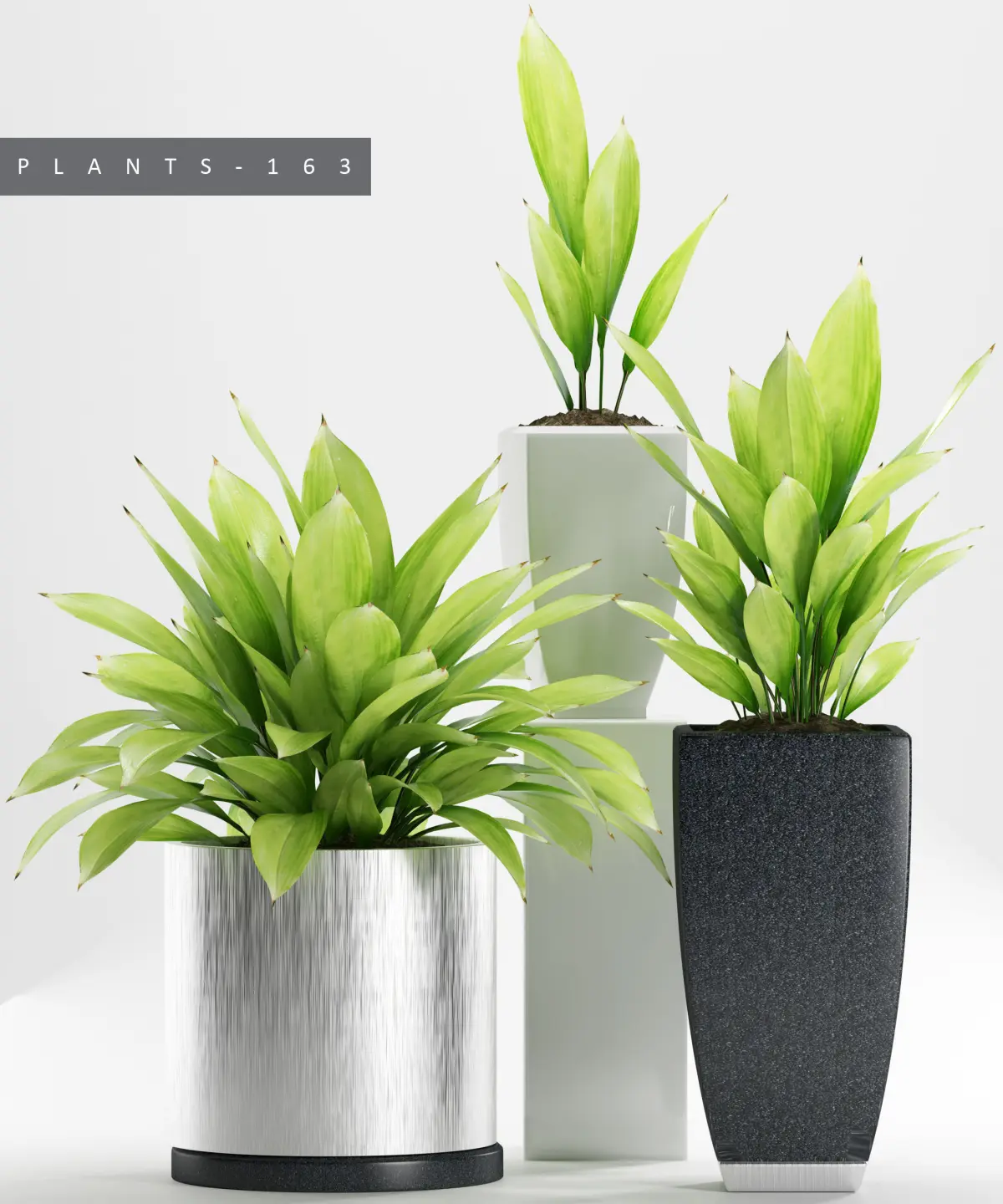 PLANTS 163 is a set of three differently arranged beautiful palm plants in modern pots, suits best for for your both interior and exterior too.. designed completely in 3dsmax and no plugins are used