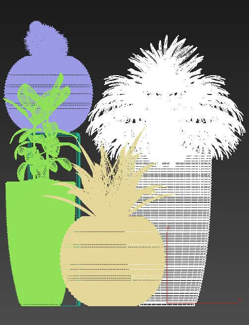 plants 262 contains four beautiful plants in a modern white pots and suits best for indoor.. contains max 2012, 2015 and obj