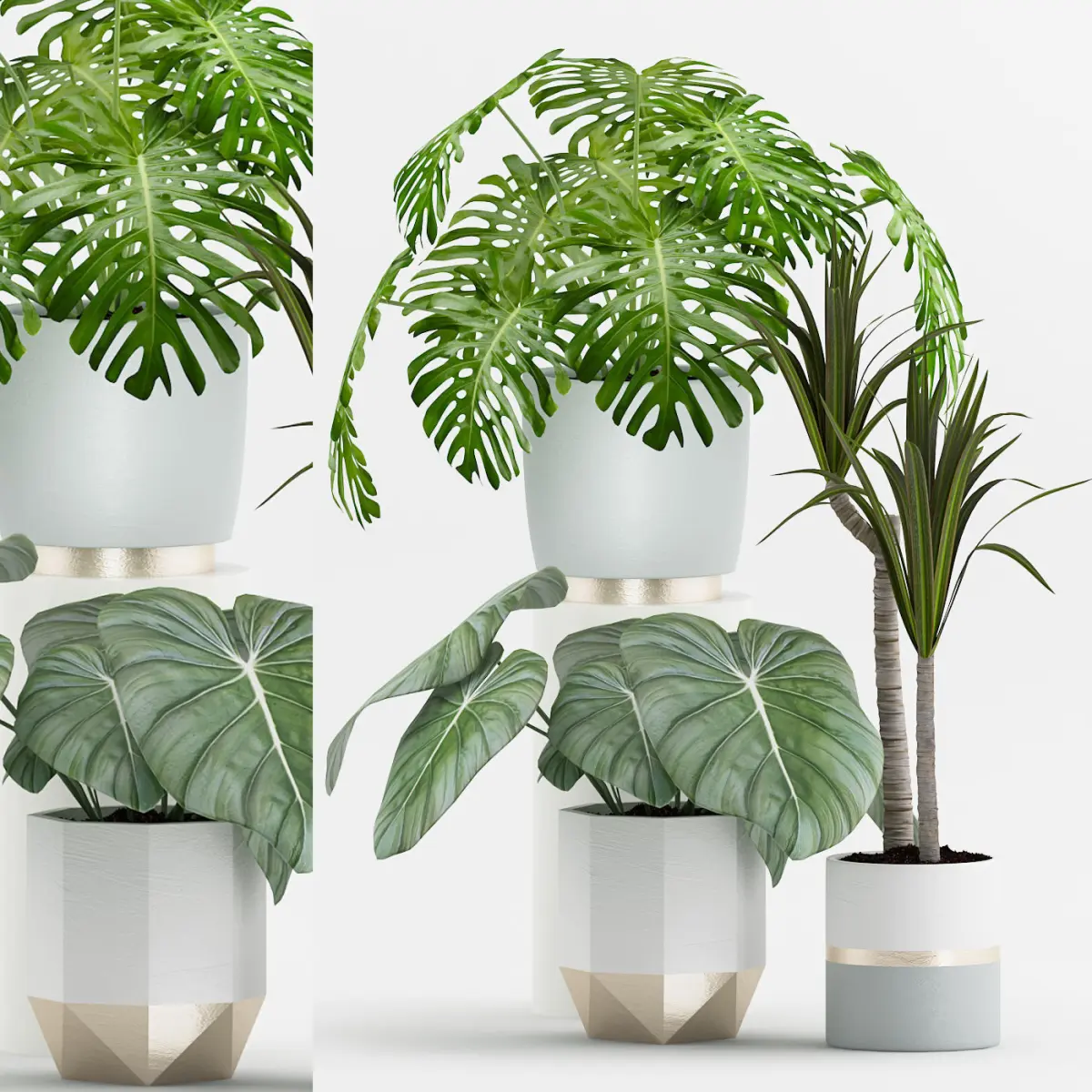 Plant 64.Philodendron, monstera, dracaena, marginata.paint with metal pot.Max 2012 and 2015 with fbx file.
