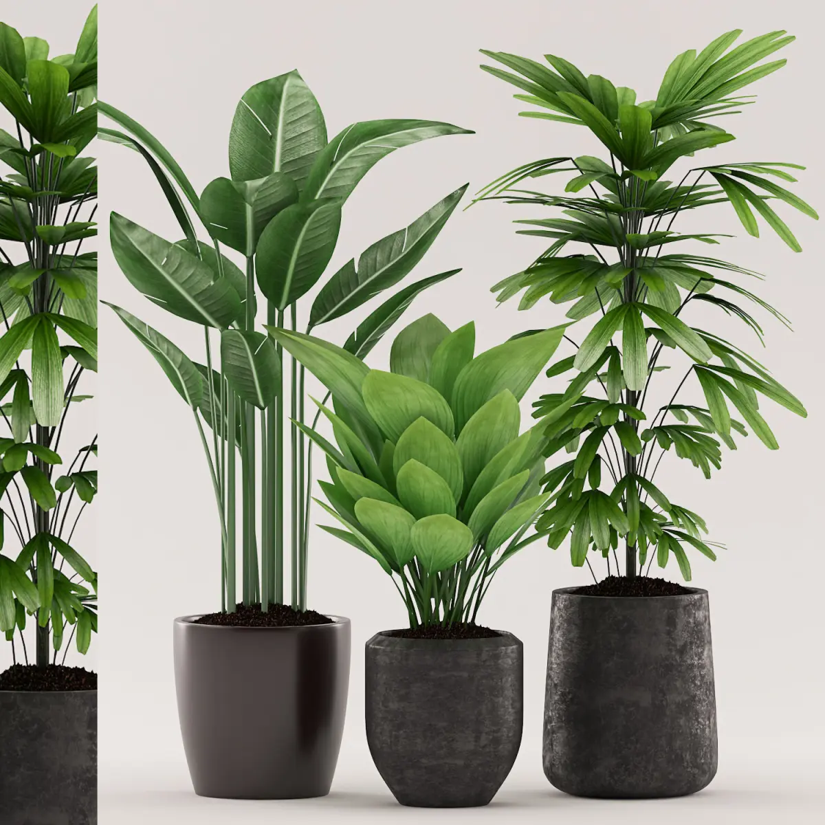Plants 98.aspidistra, paradise and palm with black pot.Max 2012 and 2015 with fbx file.