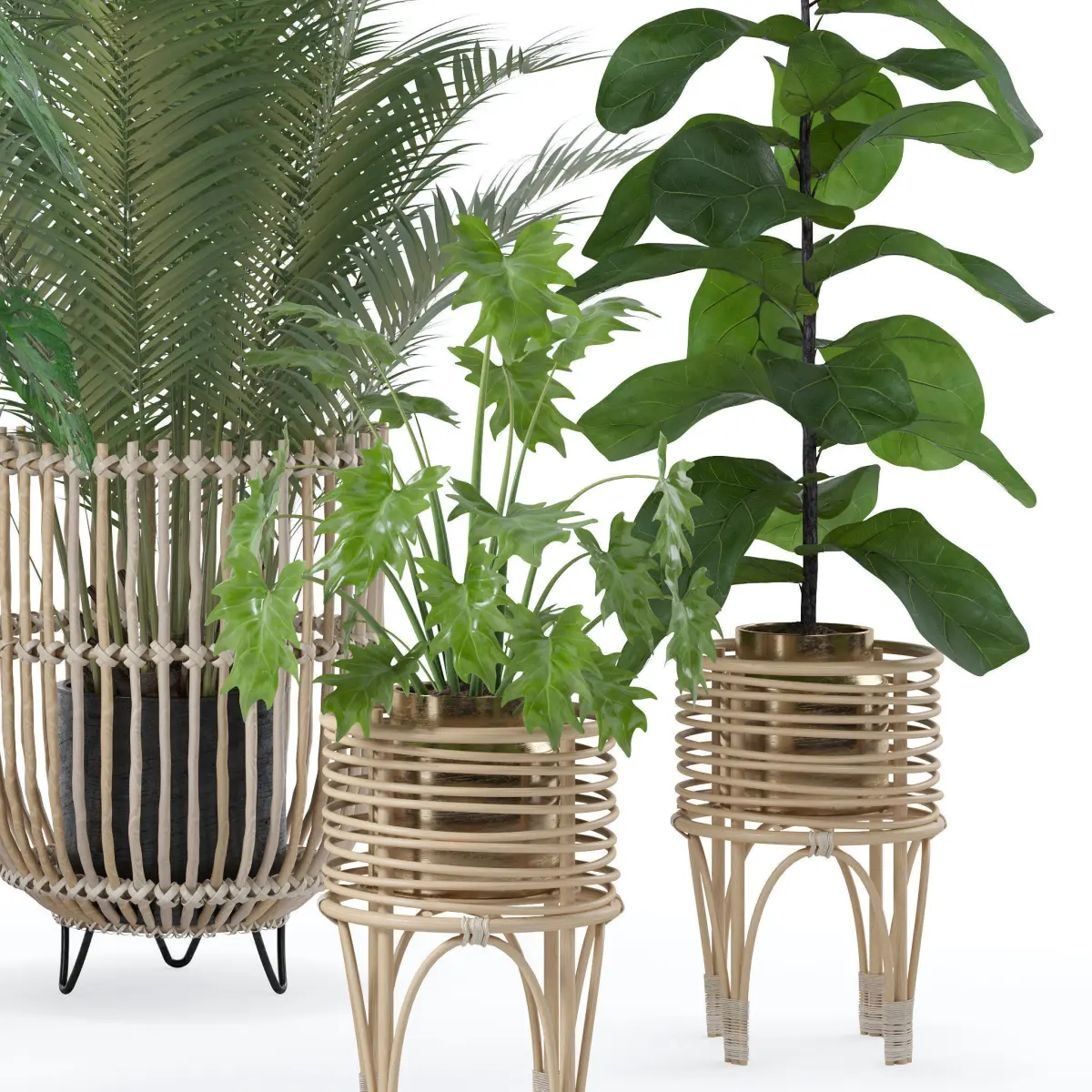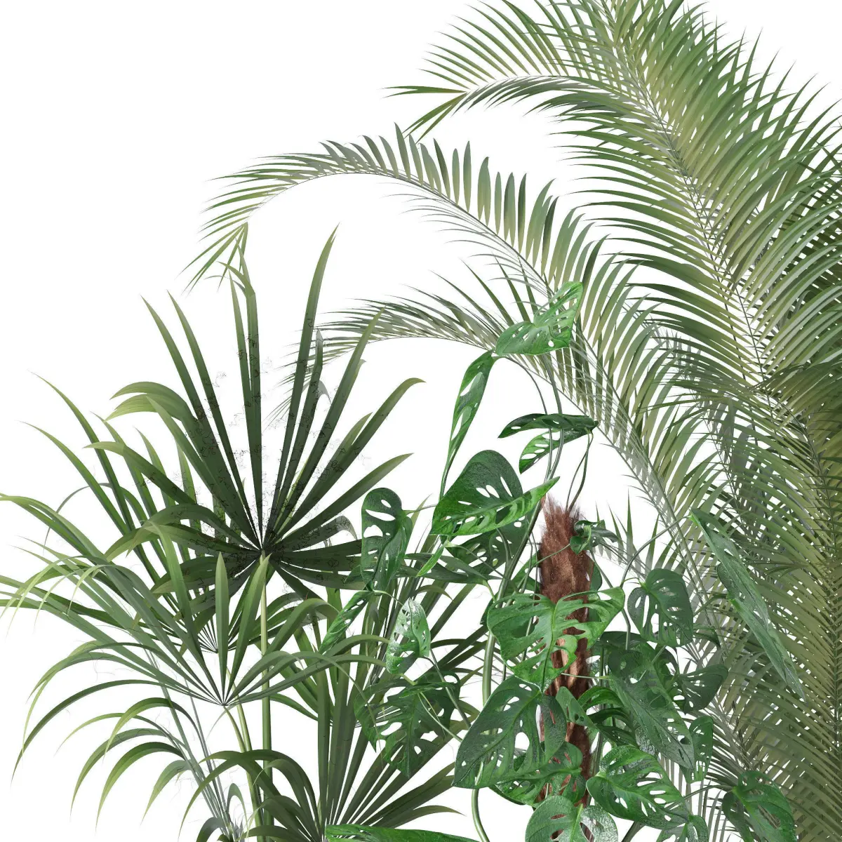 Plants collection 136This 3d model has a fully textured, detailed design that allows for close-up renders. Every model has been checked with the appropriate software.Hope you like it! Also check out my other models, just click on my user name to see complete gallery or on our website.areca palm, monstera monkey mask, philodendron xanadu, ficus lyrata, washingtonia palm